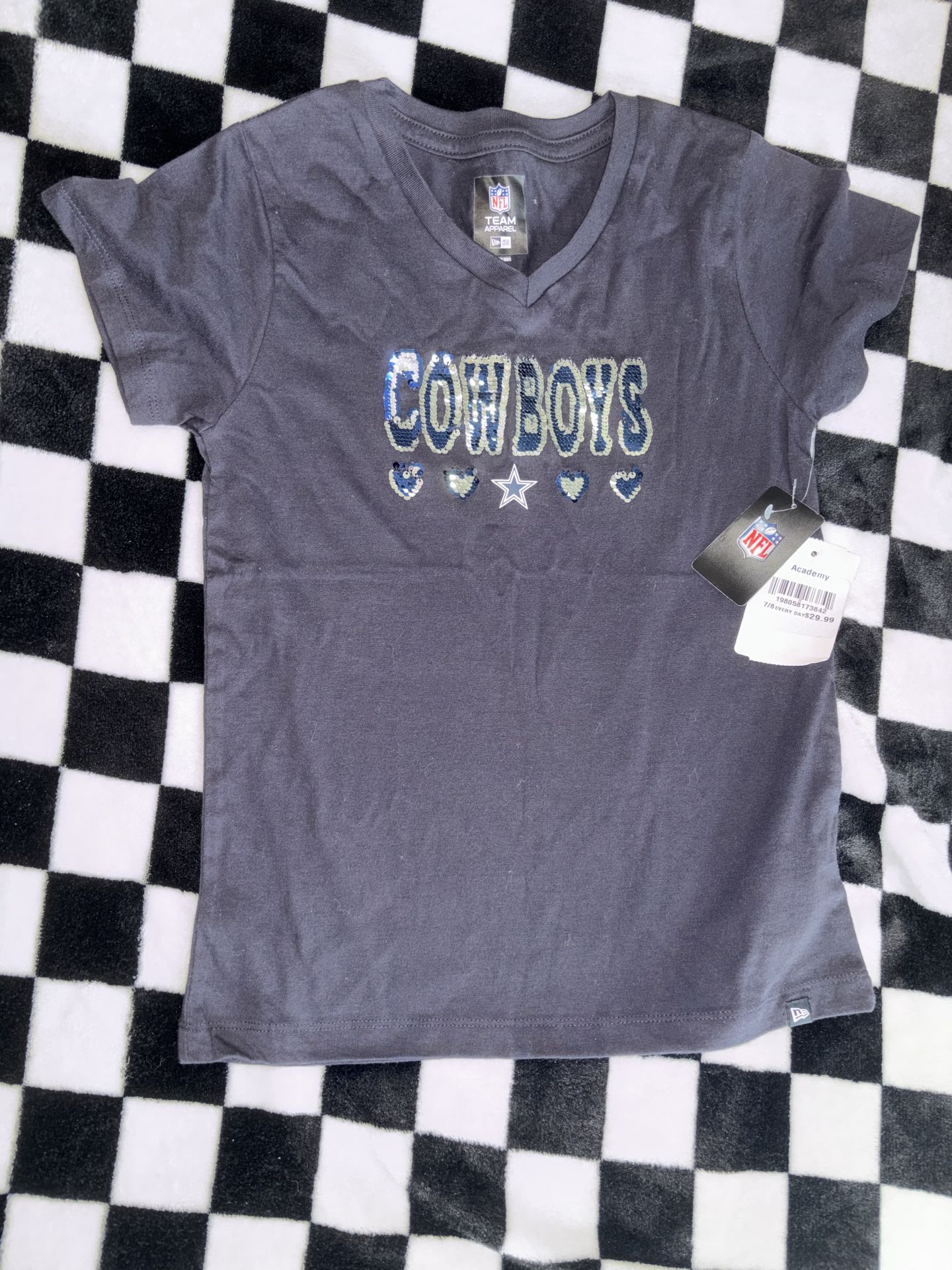 Never worn, still have tags. Girls Dallas Cowboy Tshirts. Porch pickup Cash App only. $10 ( EACH ) Size: 7/8Glitter one Size: 14 but runs small more like a size 10/12.