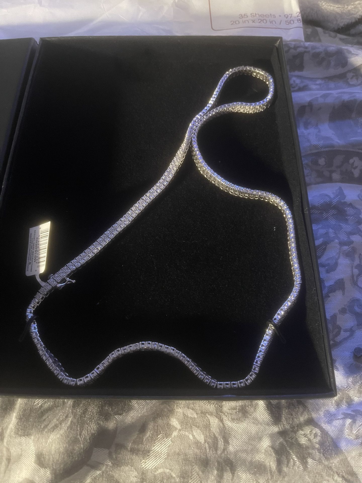 Up for sale is this beautiful 1ct diamond necklace for men or women it’s definitely a beautiful piece of jewelry crafted my Macys for sale by them it’s 24 two row diamond necklace I’m it’s original box and also sticker this retails for between 2,000$ or 1,500$ at Macys you can google it up and see for yourself than you for looking ❤️