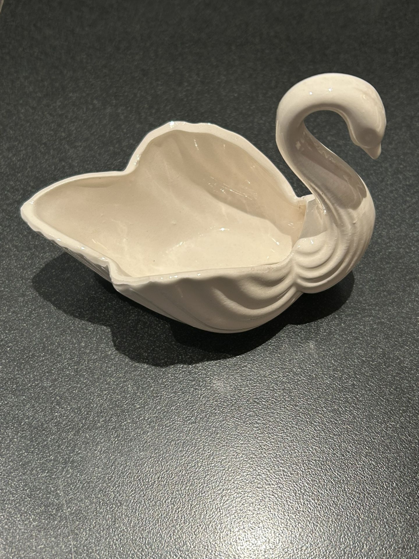 Ornate white porcelain swan. Measures 4 1/2” L, 2 1/2”W, 3 1/2” H. Clean. From smoke free home.