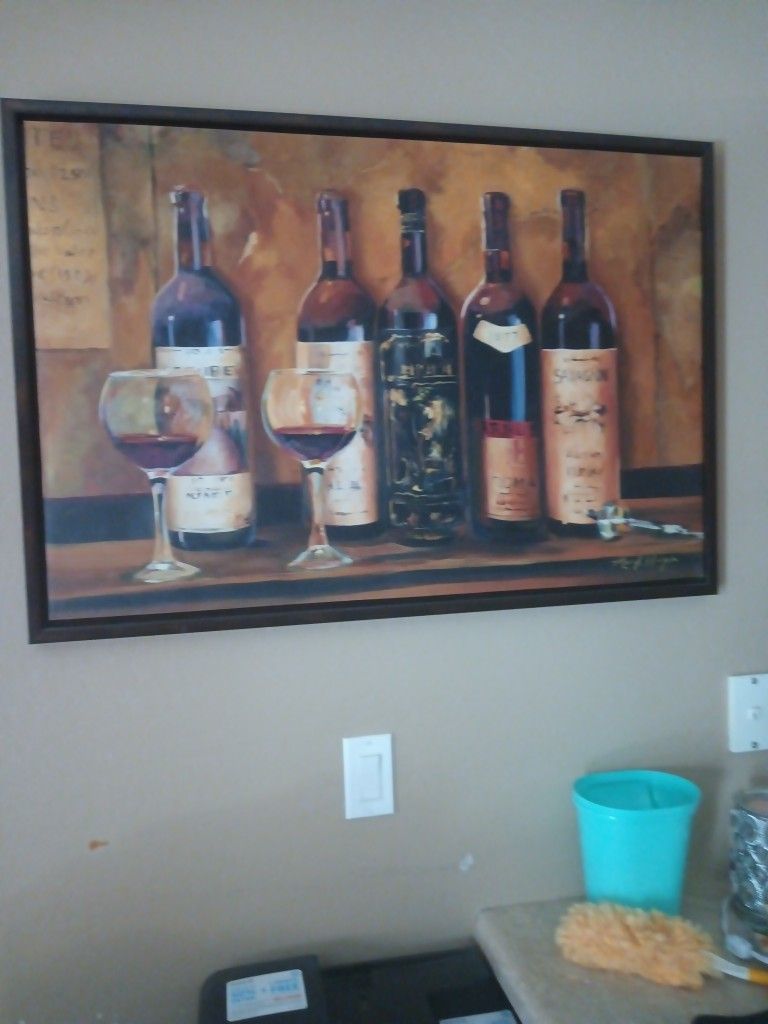Beautiful picture. Perfect for the kitchen or dining room, it's quite large. looks to be around 4ft x 2.75ft .