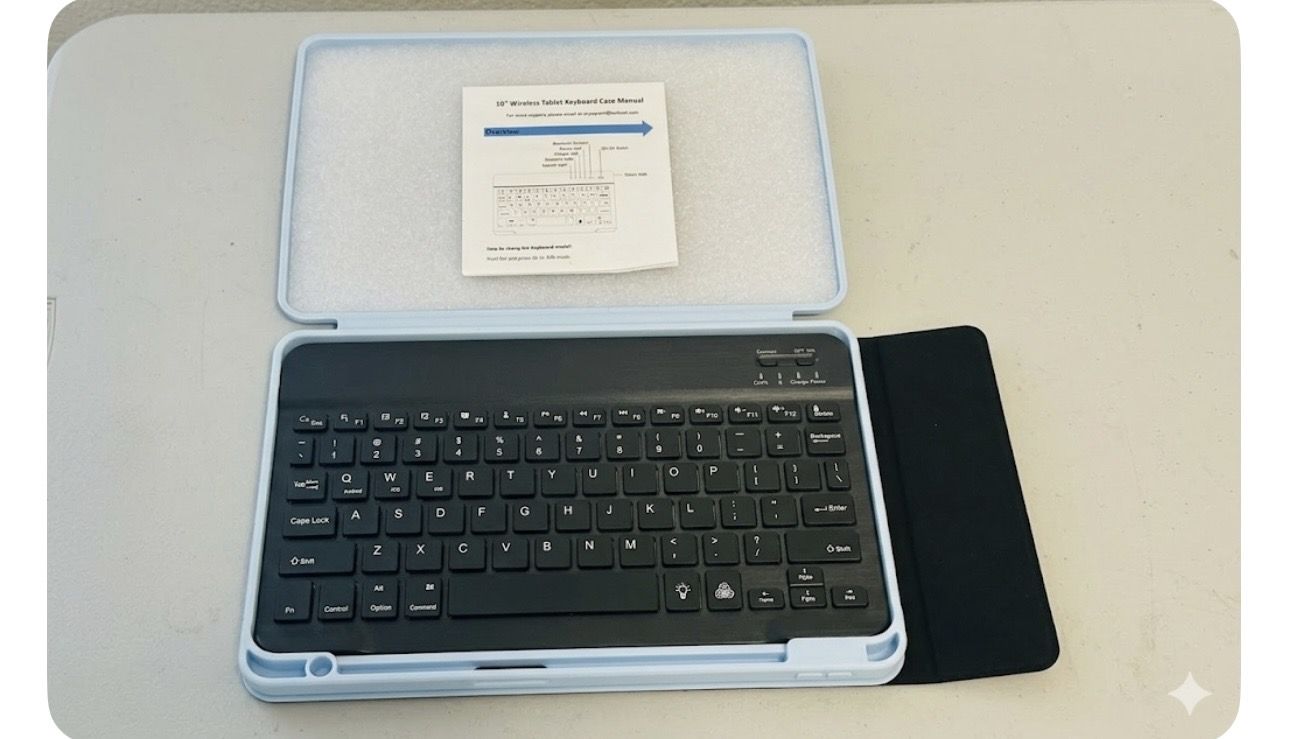 • Complete Set: Includes the ultra-slim Bluetooth keyboard, a stylish Sky Blue protective case. New 10” Universal Keyboard: The keyboard works with iOS, Android, and Windows. Perfect for iPads, Samsung Galaxy Tabs, or even your phone! Perfect for: Students, remote workers, or anyone tired of typing on a glass screen. iPad Air 4th/5th Gen."Skip the shipping wait and the "package lost" stress! Most universal 10" keyboard bundles retail for $55–$70 new. At this price. Fresno/ cash