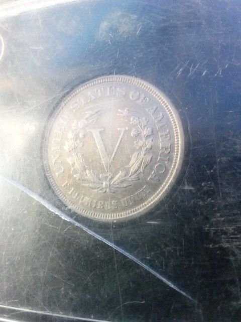 Uncirculated V nickel I it's first year of circulation. Because of this pactilar coin bandits of the time started counterfeiting these same nickels by gold plating them an passing them off as $20 gold coins that were nearly identical in appearance. Great piece of outlaw history and will forever be known as one of the greatest heists in history