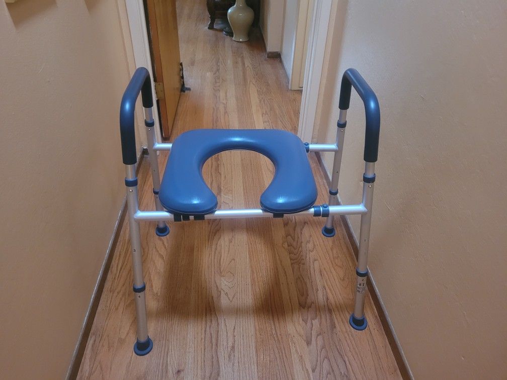 HOMLAND Elevated Toilet Seat Maximum Load Capacity: 400 lb Model C-3 Aluminum Features Adjustable hieght andwidth, Armrest, Ergonomic, Lightweight, Non-Slip, Padded, Portable, Universal Fit Excellent condition.