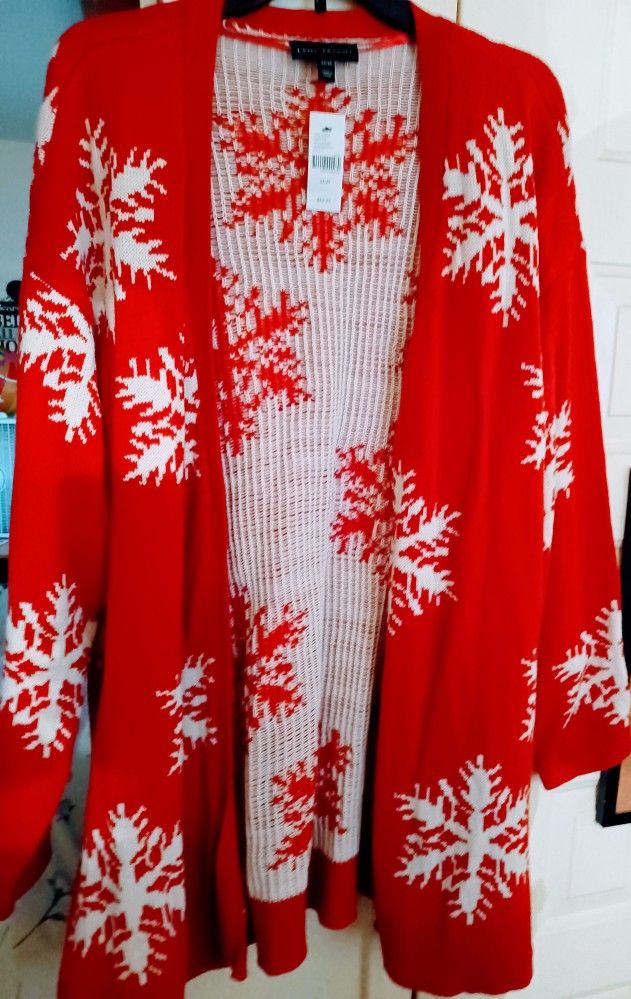 Brand New Ladies Lane Bryant 22-24 Open Front Red Cardigan Warm Sweater Has tags attached reg.$70 With Snowflakes printed Perfect for anytime to wear. Pick up Mesa. Gilbert Rd/University