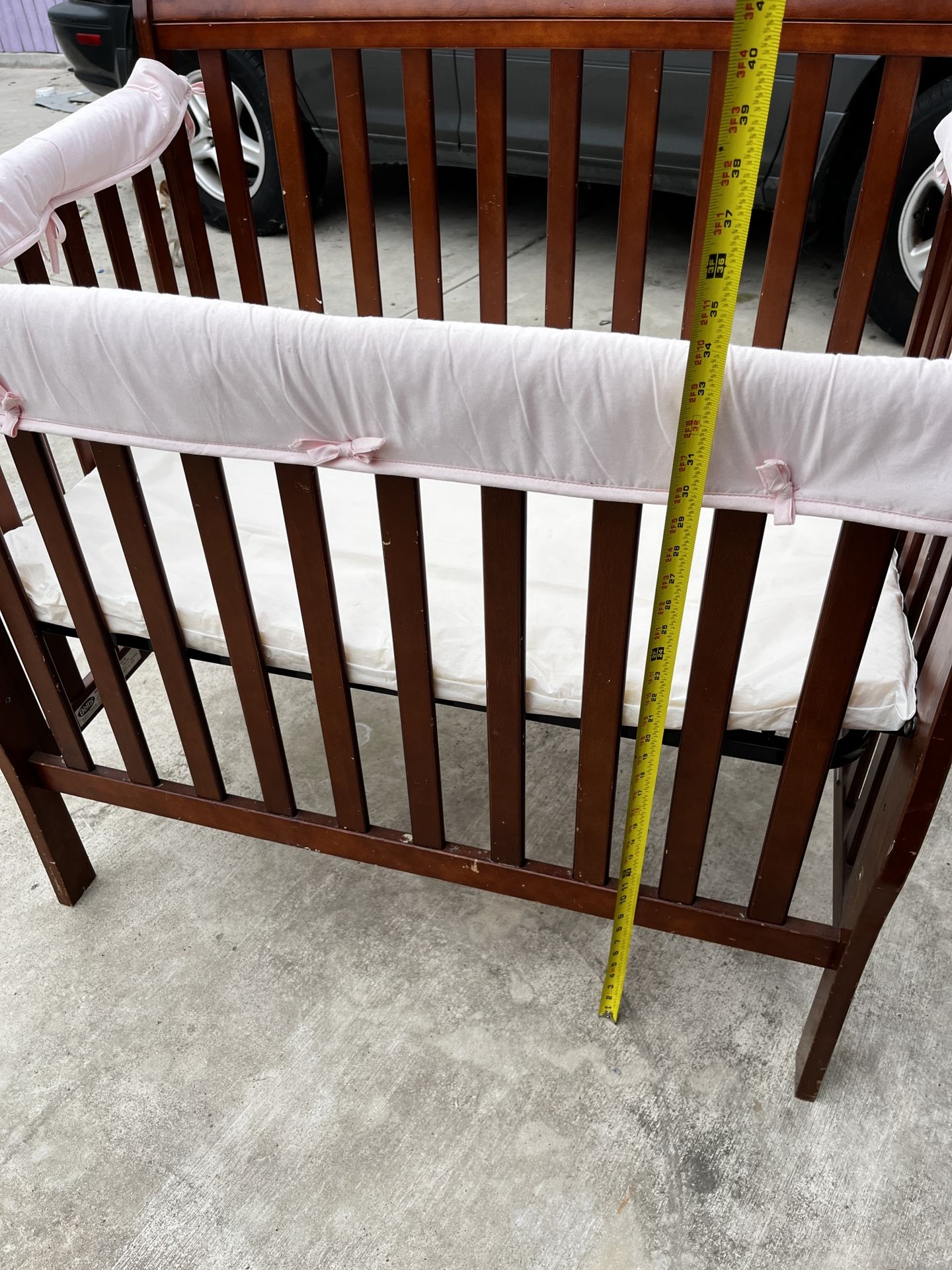 Delta Children Products Riley Mini Crib, Dark Cherry color (Style No. 4490-604). Key details include: Manufacturer: Delta Children's Products Style No.: 4490-604 Color: Dark Cherry Date of Manufacture: June 2010 Material Compliance: CARB P1 compliant