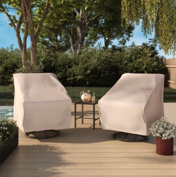 Elevate your outdoor furniture protection with our Oversized Chair Cover – the ultimate weather shield. Crafted for endurance and lasting protection, this cover stands guard against the elements. A weather-resistant coating ensures your furniture remains pristine, shielding it from dirt, dust, pollen, sap, and moisture. It also provides UV-protection, safeguarding your furniture from extreme temperatures. With a robust, elastic hem, your cover stays securely in place, providing a snug fit for unrivaled peace of mind. Durable, eco-friendly polyester with weather-resistant coating Breathable fabric to prevent moisture buildup Cover dimensions: 35-in D x 33-in W x 36-in H, Fits most oversized chairs up to 36-in Elastic hem for a secure fit UV-protection to shield from harmful sun rays (contact info removed)