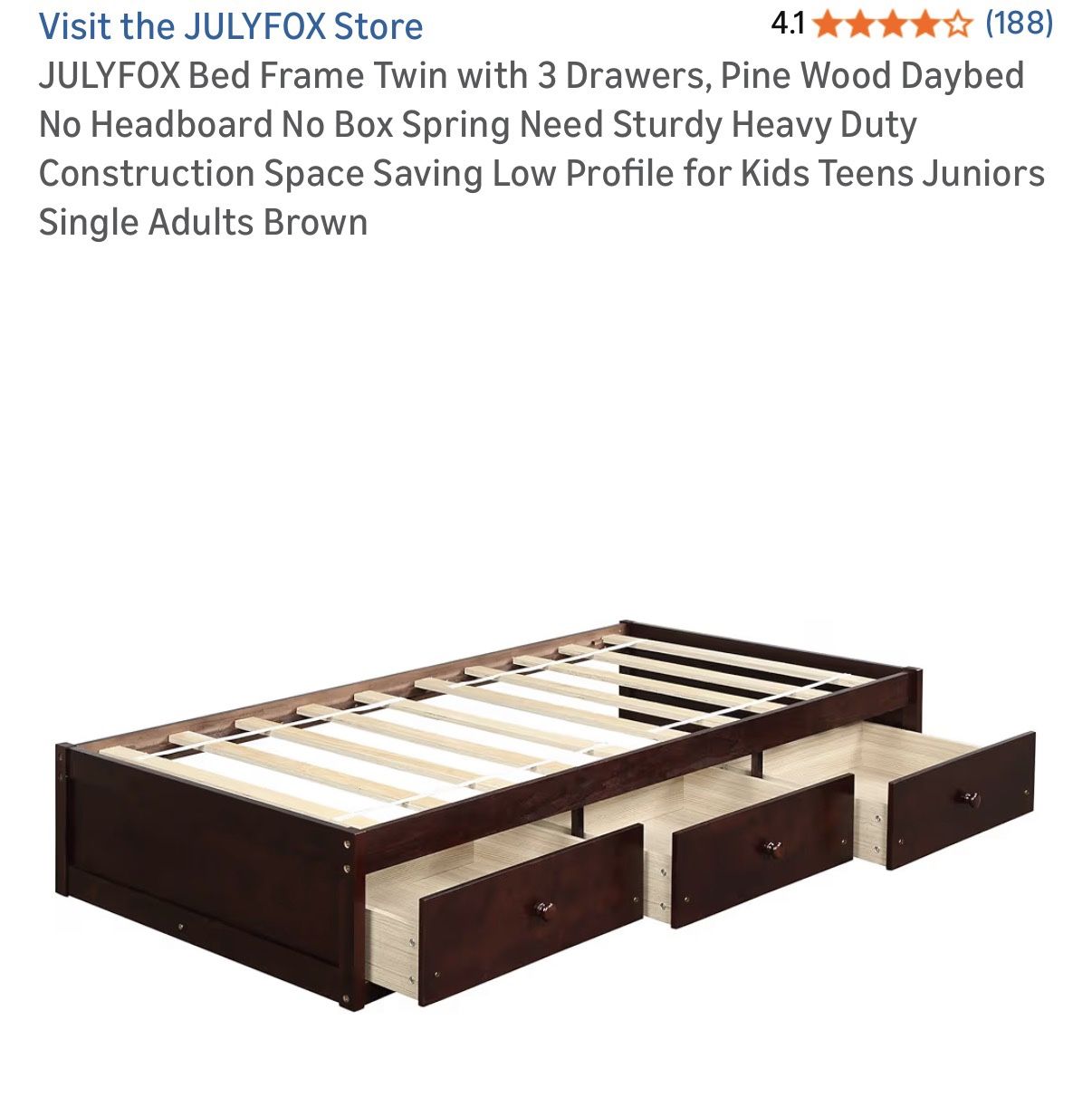Twin bed, comes with mattress if you want, otherwise, I’ll toss. Good shape, son is upgrading to a queen bed.