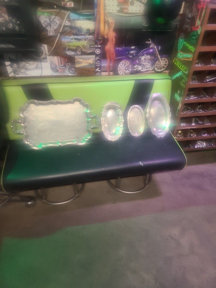 Antique silver trays asking $140 obo for all of them