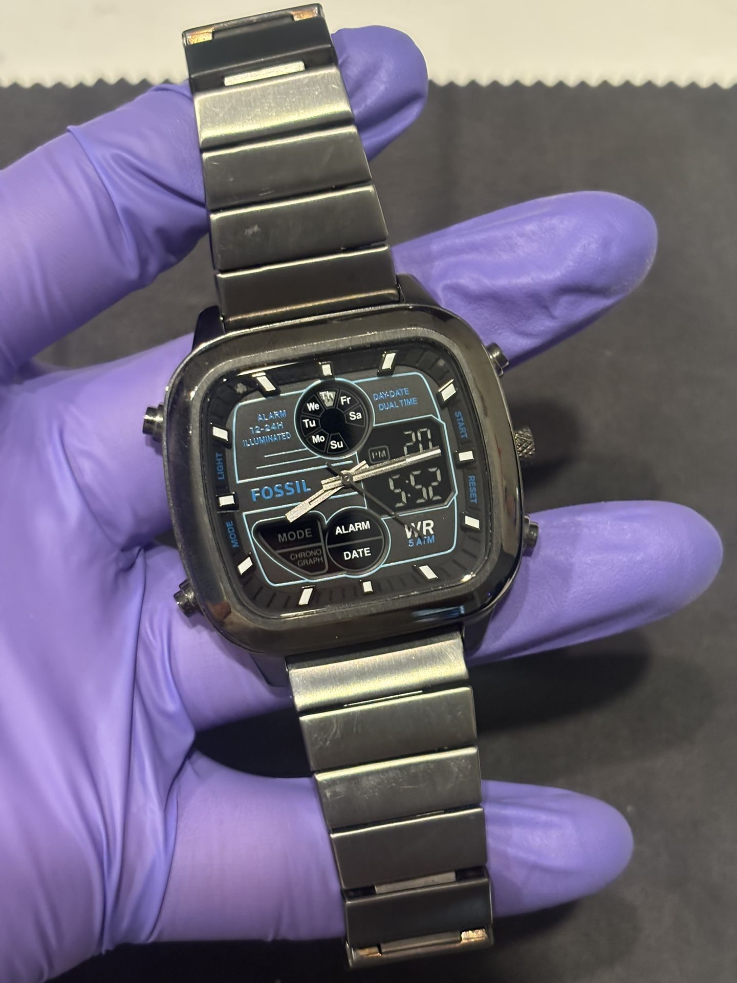 Fossil Gray Stainless Steel Analog Digital Quartz Wristwatch Alarm Chronograph