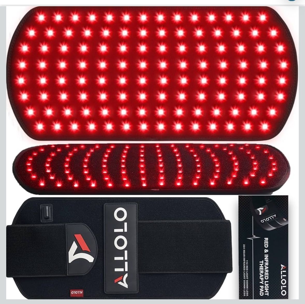 UPGRADED 3 IN 1 LED BEAD: ALLOLO red light therapy for body has a total of 112pcs professional lamp beads, each lamp contains 3 chips(112*660nm red light and 224*850nm infrared light). And ALLOLO red light therapy belt provides 4 modes, red+infrared light mode, red light mode, infrared light mode, and pulse mode.Pulse mode is our red light therapy wraps all lights (660nm red lights and 850nm infrared lights) at a rate of 600 flicks per minute will generate 10HZ pulse rate energy. MULTI-FUNCTION & EASY TO USE: Our adjustable wearable infrared red light therapy device equipped with 31.1 inch Elastic Strap, 31.1 inch Extension Belt, red light coverage area is 16.7 inch*7.9 inch which can cover multiple body parts. You can use it on your back, belly, waist, abdomen, shoulder, chest, hands, legs, hips, thigh, calf, knees and feet. No more expensive trips to spas or expensive parlors, you can enjoy the comfort benefits of the red light therapy mat in the office or at home. LIGHTWEIGHT AND PORTABLE: ALLOLO Red light belt with soft material is friendly to our skin, comes with a timer controller for 5/10/15/20/25/30 minutes, allowing you to set the duration of your treatment. The near infrared light therapy device is wired and equipped with 2 power supply modes: charger or any mobile power supply. The led infrared light therapy for pain conveniently plugs into the USB port on your power bank, computer, laptop or a charging adapter into a wall outlet. (POWER BANK