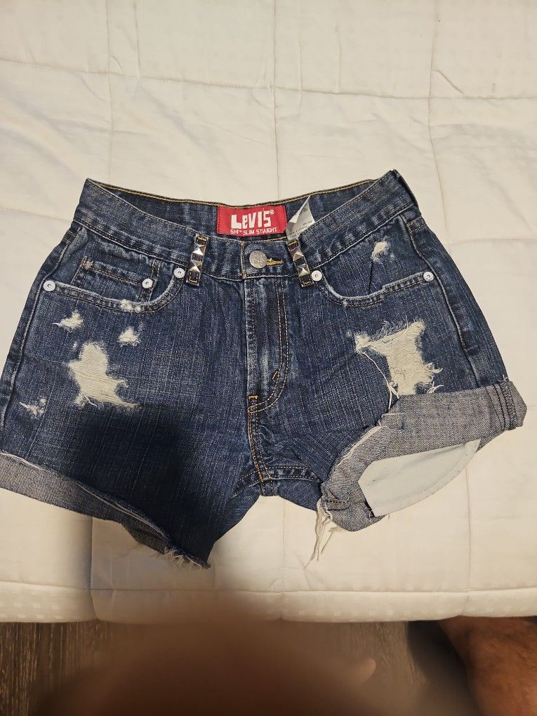 This is a pair of super cute Levi's 514 denim jean shorts. They are a size 14 reg and have enough length left in them to style them differently if you wanted. Very cool and ready for the summer.. Ready for festivals, cowboy/cowgirl look, the beach, the summer, coachella, stagecoach. Look great with boots, sandals, barefoot, sneakers. These look great on. And the color goes with so much stuff. More denim, more booty shorts, and many more items being updated weekly. Please check out other listings. Thank you 002