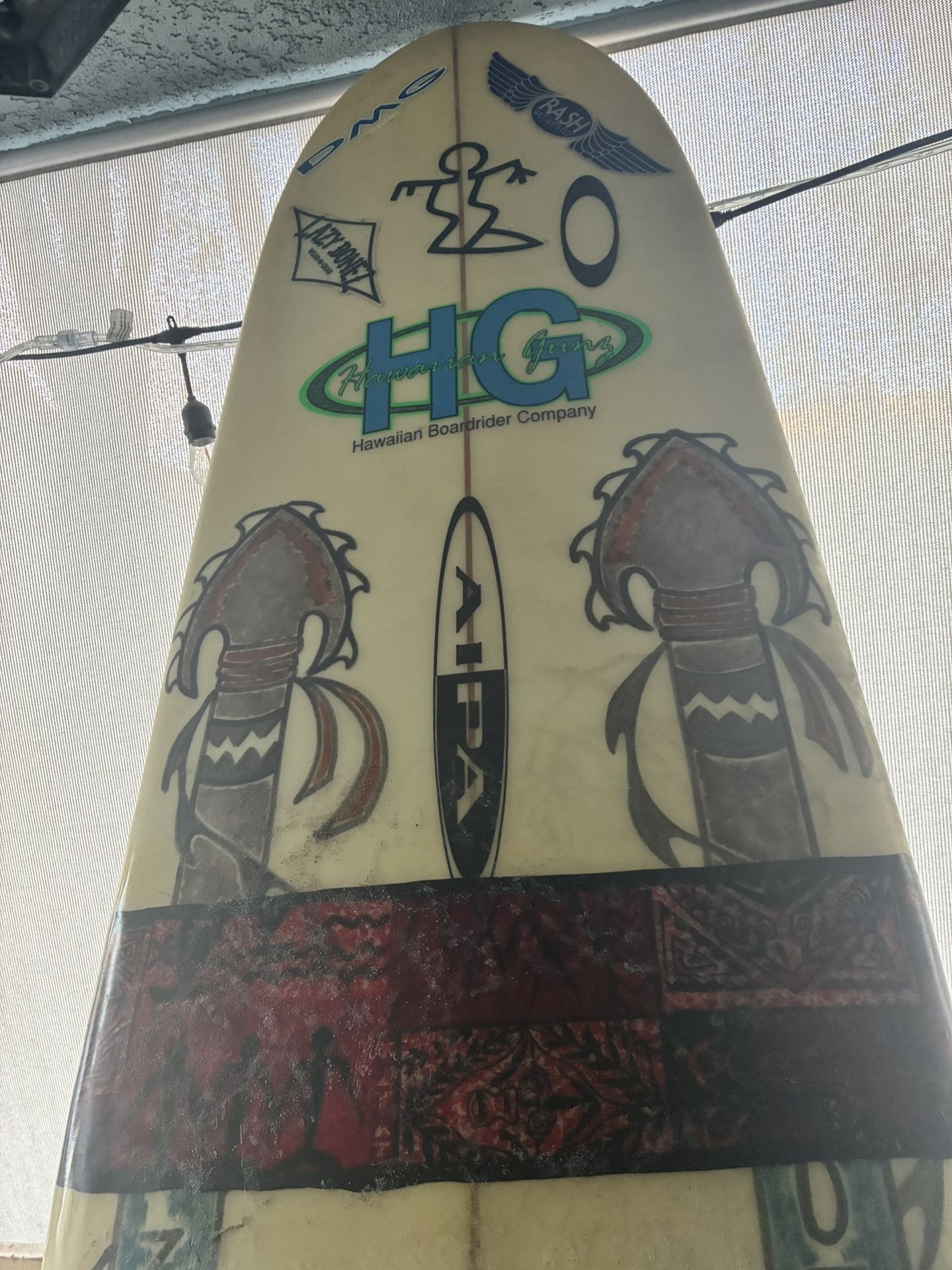 9’ 5” Ben Aipa classic collection This board was hand painted by his daughter when shaping this deck. Has some dings, but nothing major. It still has some life in it, but this will be must have for a collector.