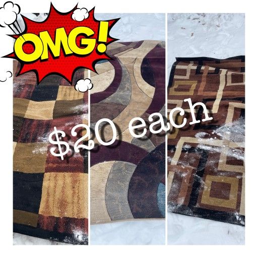 Great beautiful nice area rugs $20 each for each one must pick up or if you want all 3 of them free delivery...thank you..