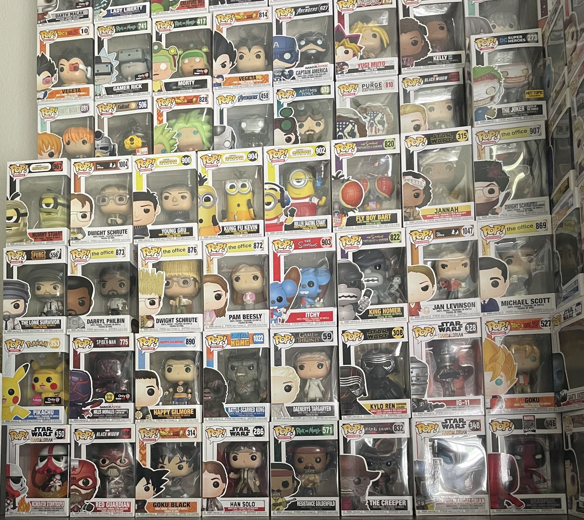 I have many different pops I’m selling to list off a few categories, there are anime pops, Rick and Morty, Marvel, DC, celebrities, Disney, the office, horror and more. Prices vary depending on the funko pop. All in mint condition!!! Willing to negotiate depending on the pop as well. Lighting in the pictures isn’t the best so if you’re interested in specific pop that you don’t see, please message me directly and I will let you know if I own it.