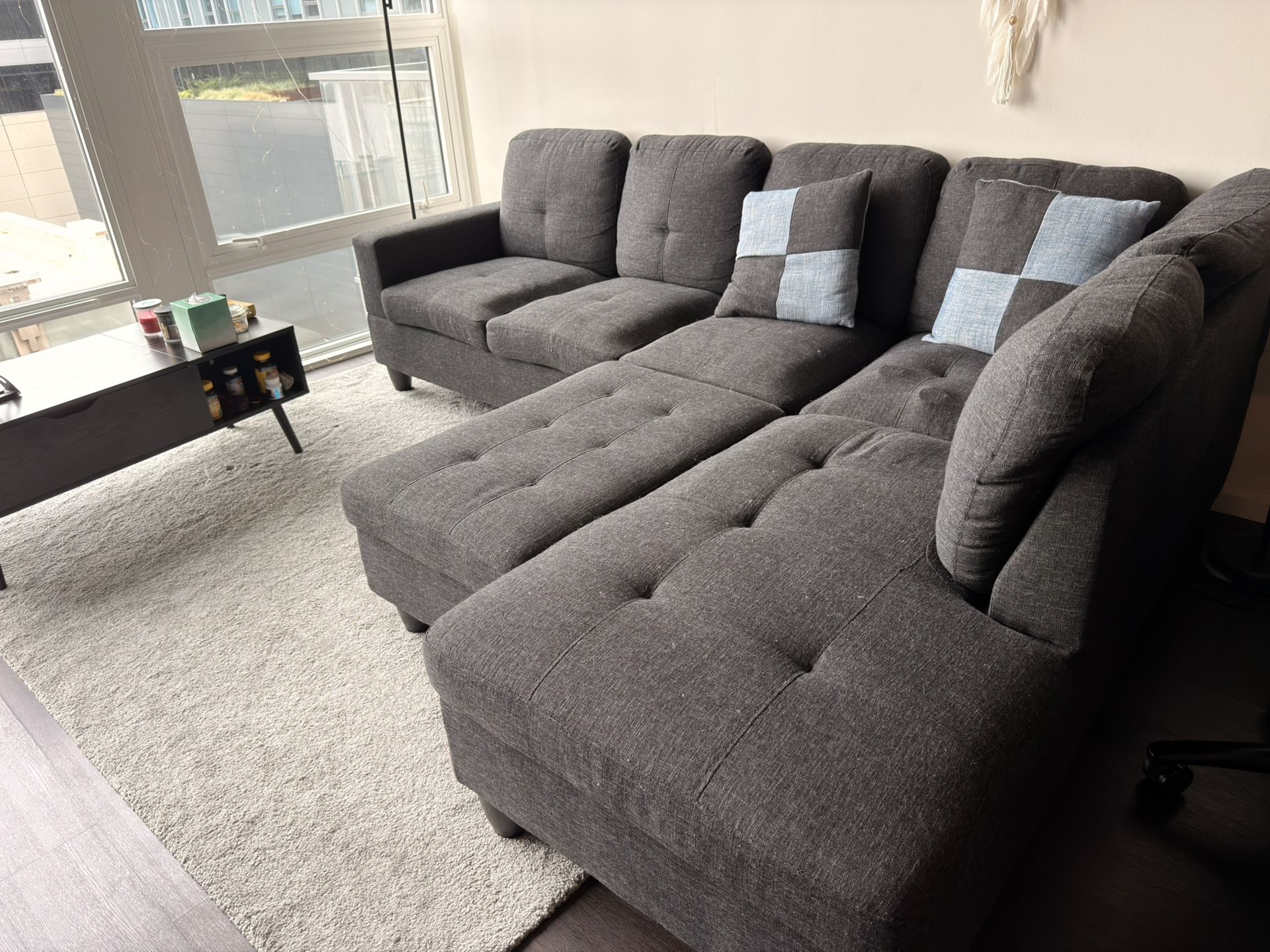 Couch for sale, Normal wear and tear! Color: Gray/Charcoal 6 seater couch L shaped with an ottoman (with storage). DM for pickup details
