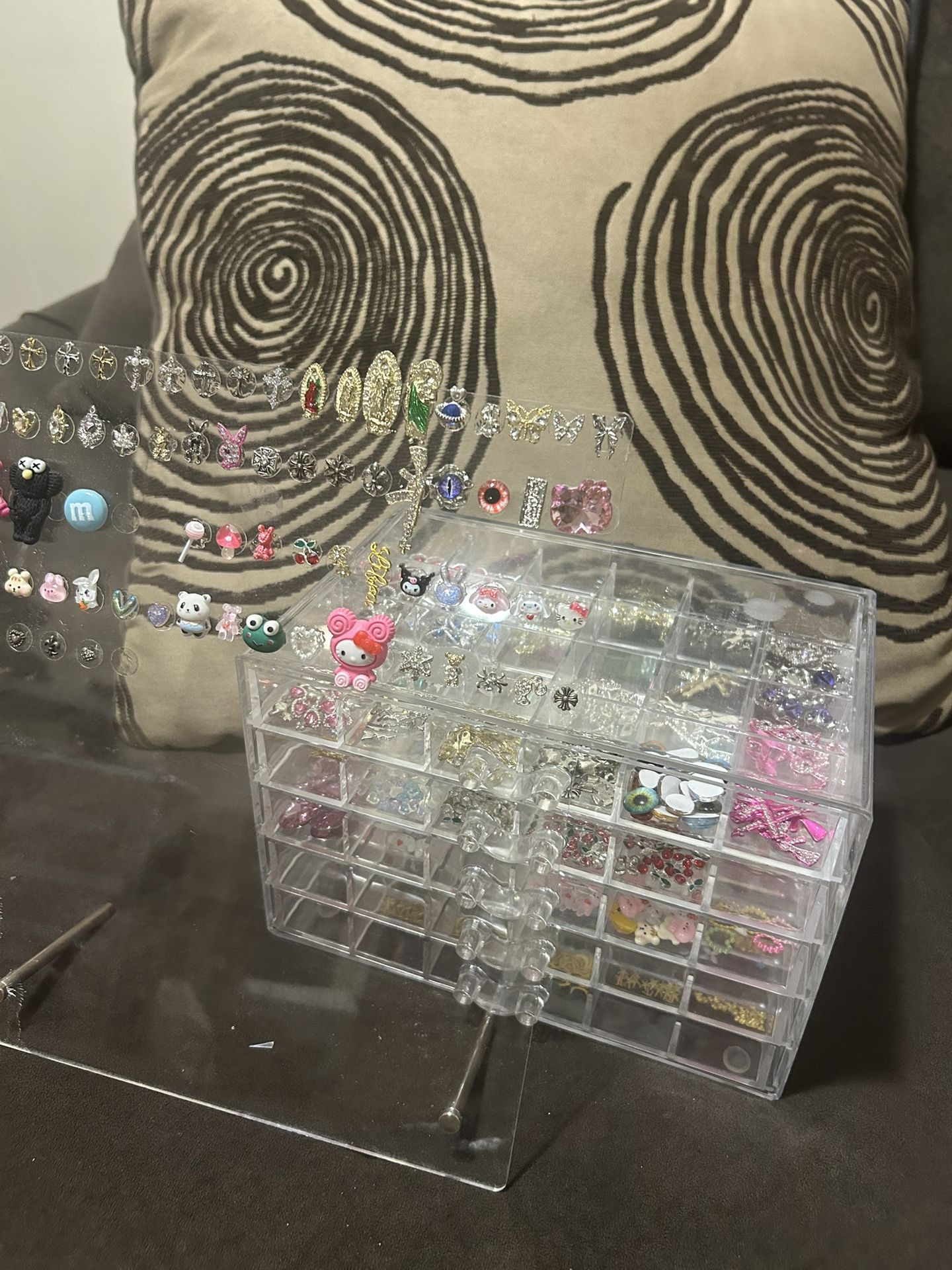 All charms in it(new), the organizer (used), and unfinished nail charm display + charms on it -don’t have time to disassemble display charms