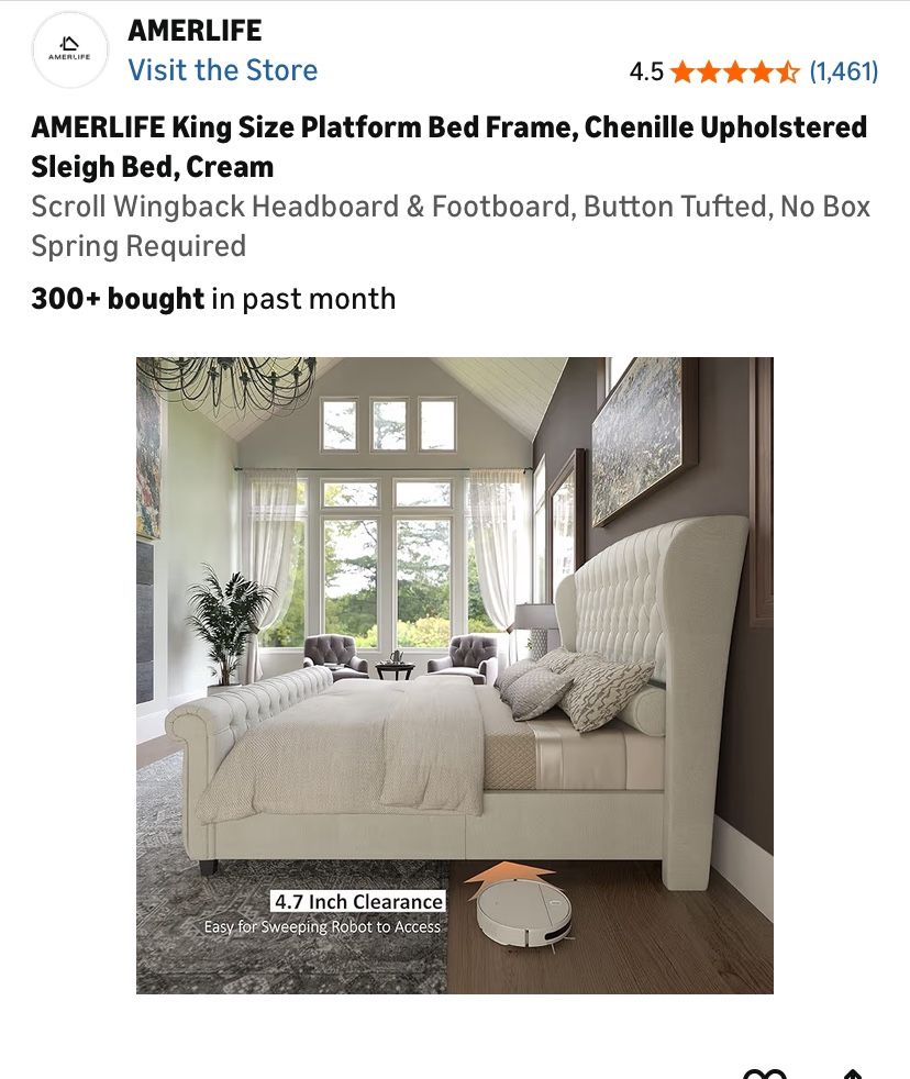King Size Sleigh Bed Light Cream Brand New