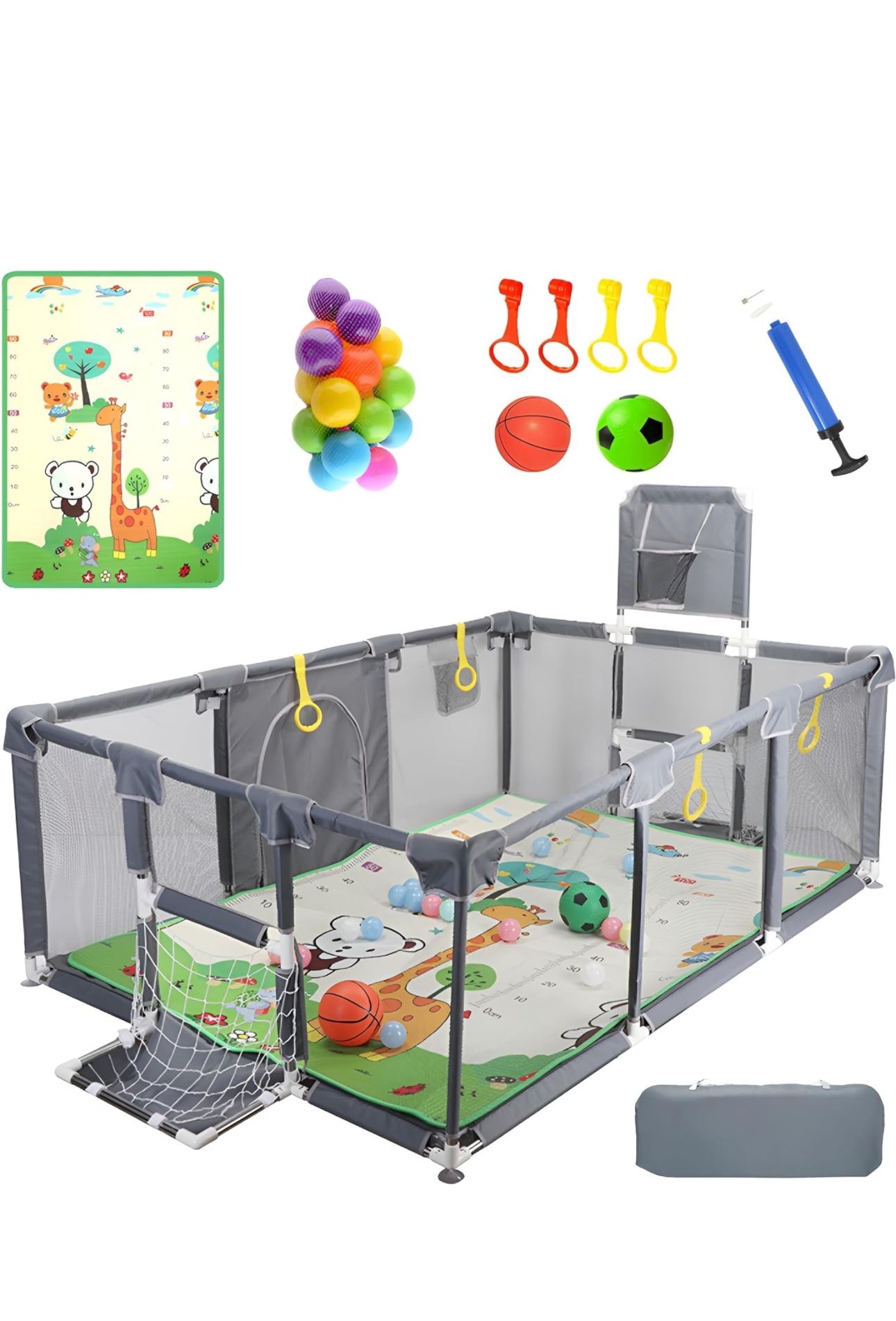 Upgrated Baby Playpen with Mat, Playpen for Babies and Toddlers, Large Playpen with Mat, Sport Playpen, Play Pen with Accessories, Baby Fence, PlayPen Indoor & Outdoor Activity, Sturdy Kids