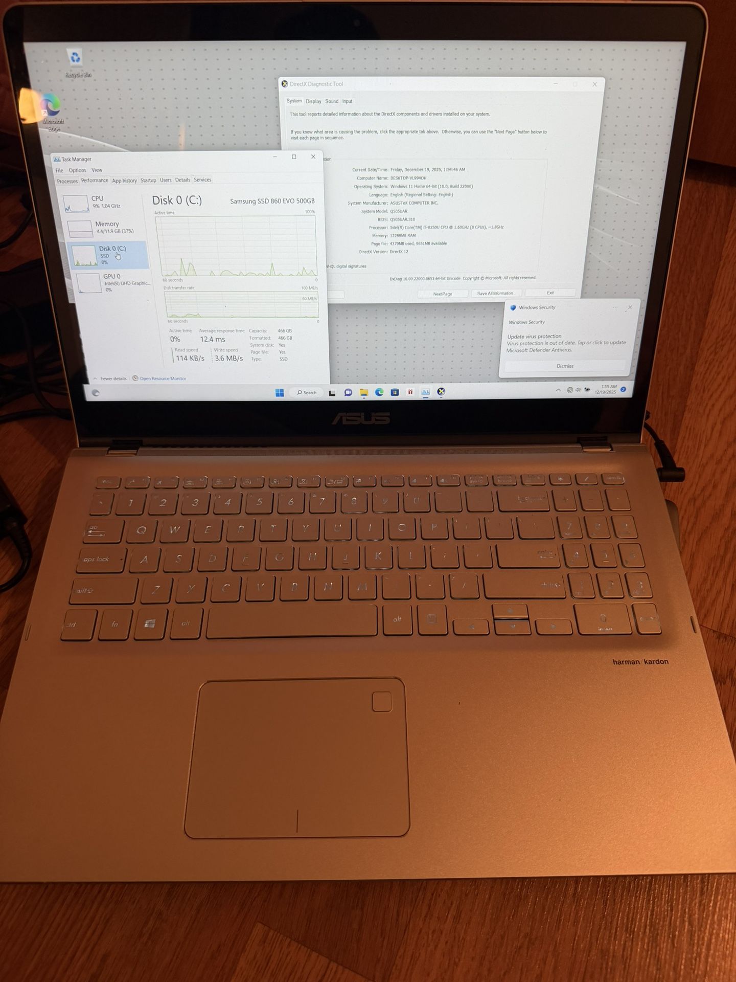 ASUS Q505 Touchscreen | INTEL CORE I5-8250U 1.60GHZ | 500GB SSD | 12GB | Window 11