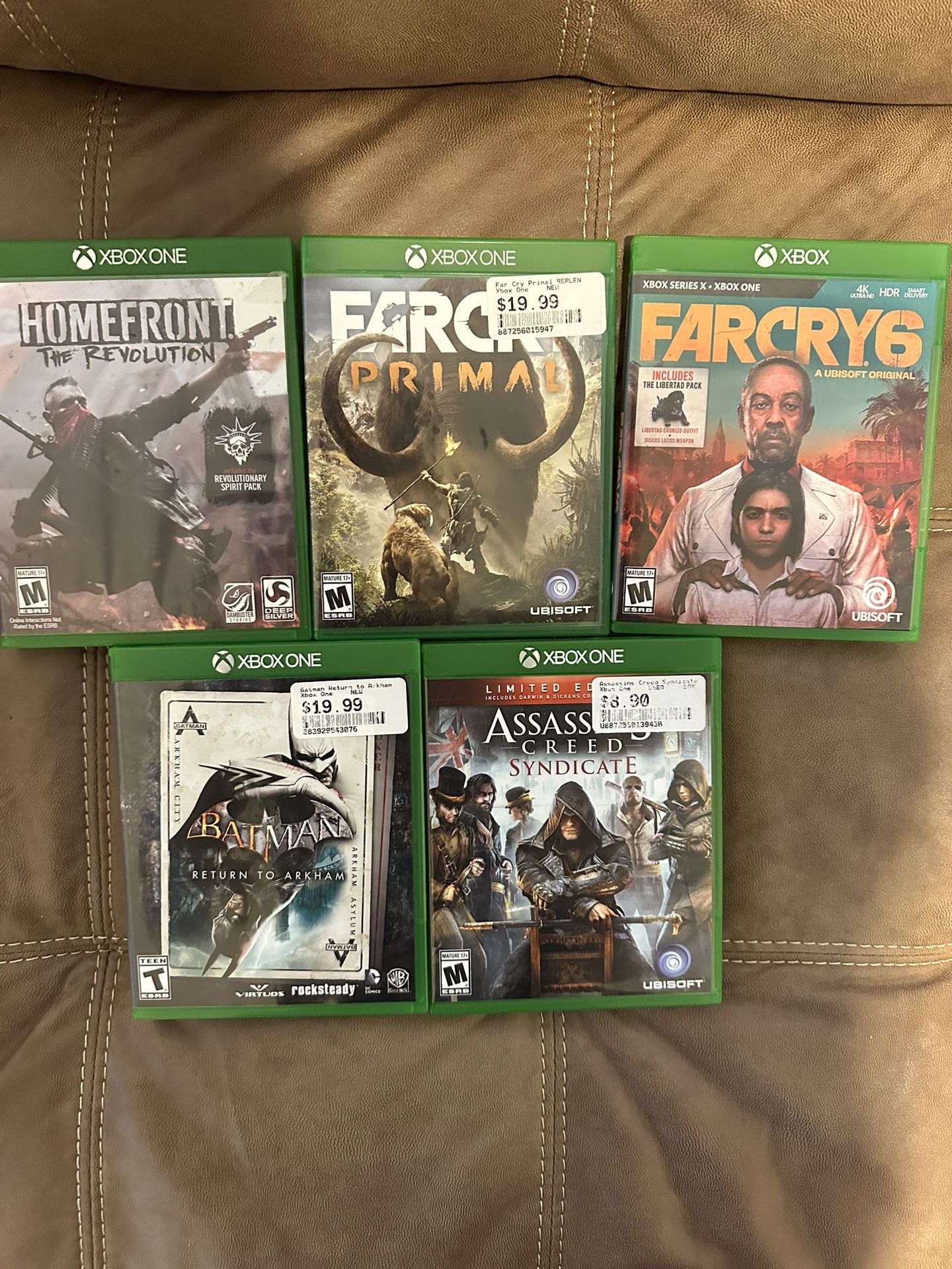 Selling a bundle of 5 Xbox One games, all tested and in good working condition. Each game comes with its original case and cover art. This is a great value for anyone looking to expand their collection or just pick up some solid titles to play. What’s included: • Far Cry 6 (compatible with Xbox Series X and Xbox One) • Far Cry Primal • Batman: Return to Arkham • Assassin’s Creed Syndicate (Limited Edition) • Homefront: The Revolution These games are pre-owned and gently used. All discs are in good shape with no major scratches. No digital codes are included. Perfect for casual gamers, collectors, or anyone looking for a great deal on quality Xbox One games.