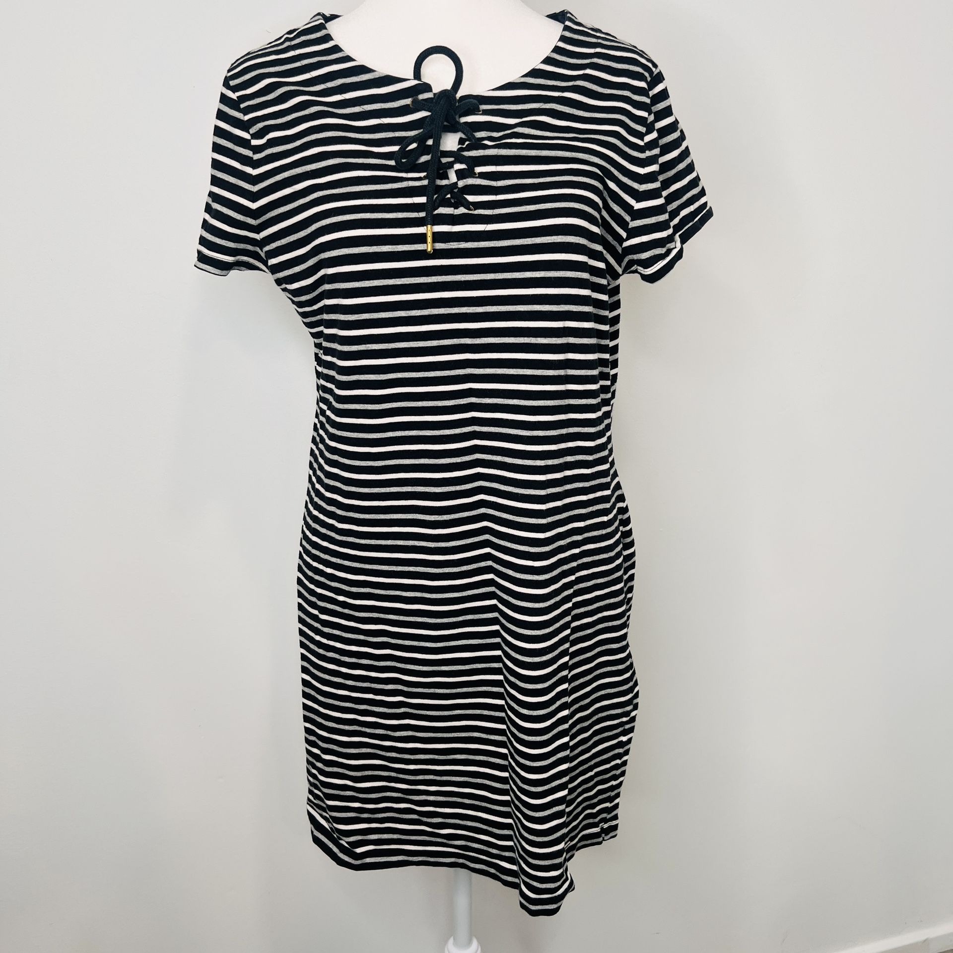 Striped Tommy Hilfiger Navy Blue Gray And White Form Fitting Dress Size L