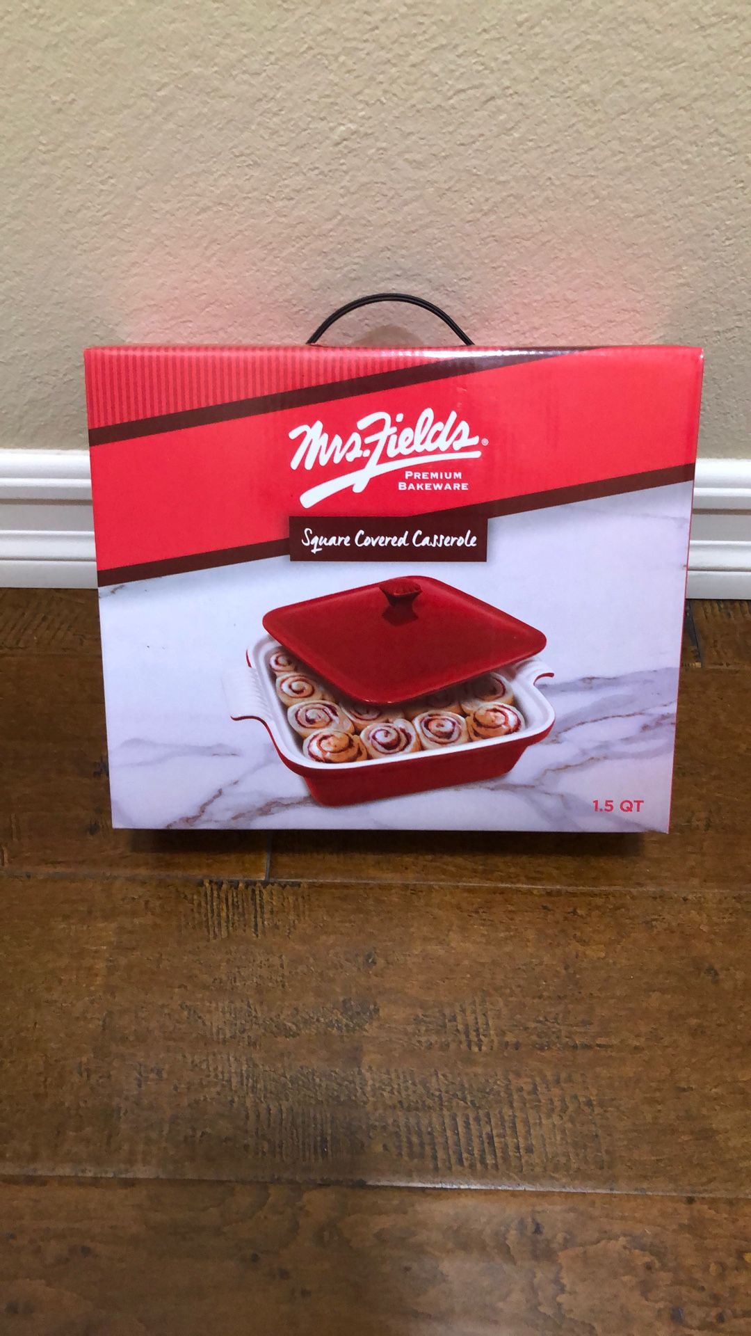 Mrs. Fields premium bakeware Square covered casserole baking pan dish. New inbox. 1.5 quart. Bake serve store and reheat. Oven safe up to 450°. 11 x 9 x 3”. Red and white. Dishwasher microwave oven and freezer safe. See my other listings for more baking and kitchen ware