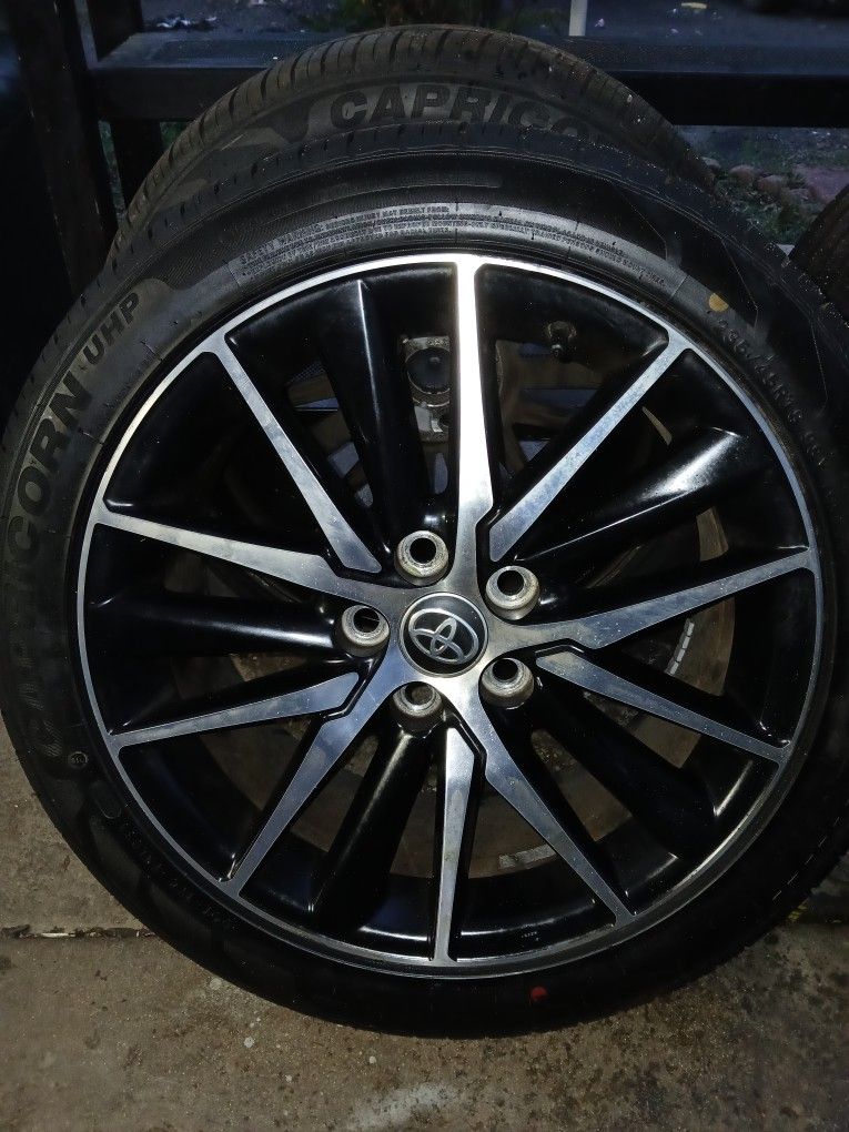 18 " New tires and rims. Put New tires and 2 days later was in a car accident got hit in the back. I have a camary 2017 which I think will be junk.
