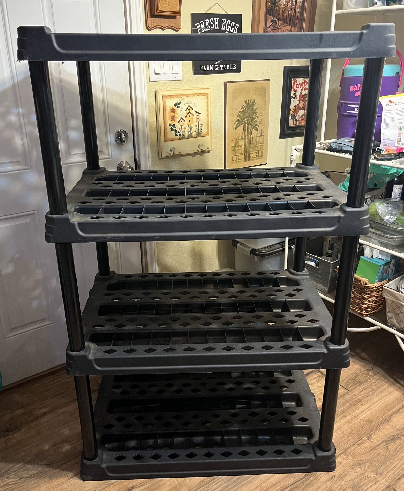 This is for a 4 tier shelving unit. The shelves are a heavy duty plastic and can hold quite a bit. They were kept as organizers in a storage unit so have little wear and tear - just dusty. They’re approx 56.5” tall, 36” wide an 24” deep. I have two that can interconnect with each other if interested! Feel free to send offers. Thanks so much for lookin!