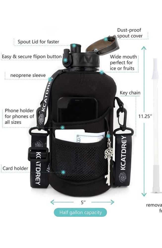 New 2.2L water bottle with neoprene sleeve can keep water cold, absorb sweat, store phones, keys and cards with shoulder strap