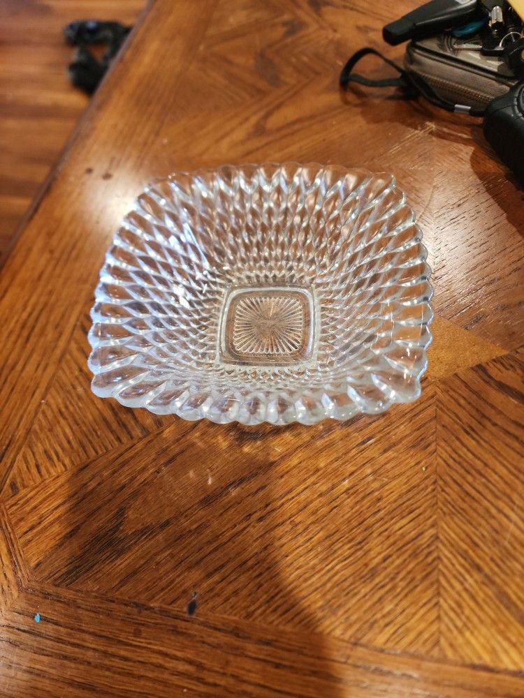 Vintage Clear 1950’s Indiana Glass Square Diamond Point Candy / Nut Dish Bowl