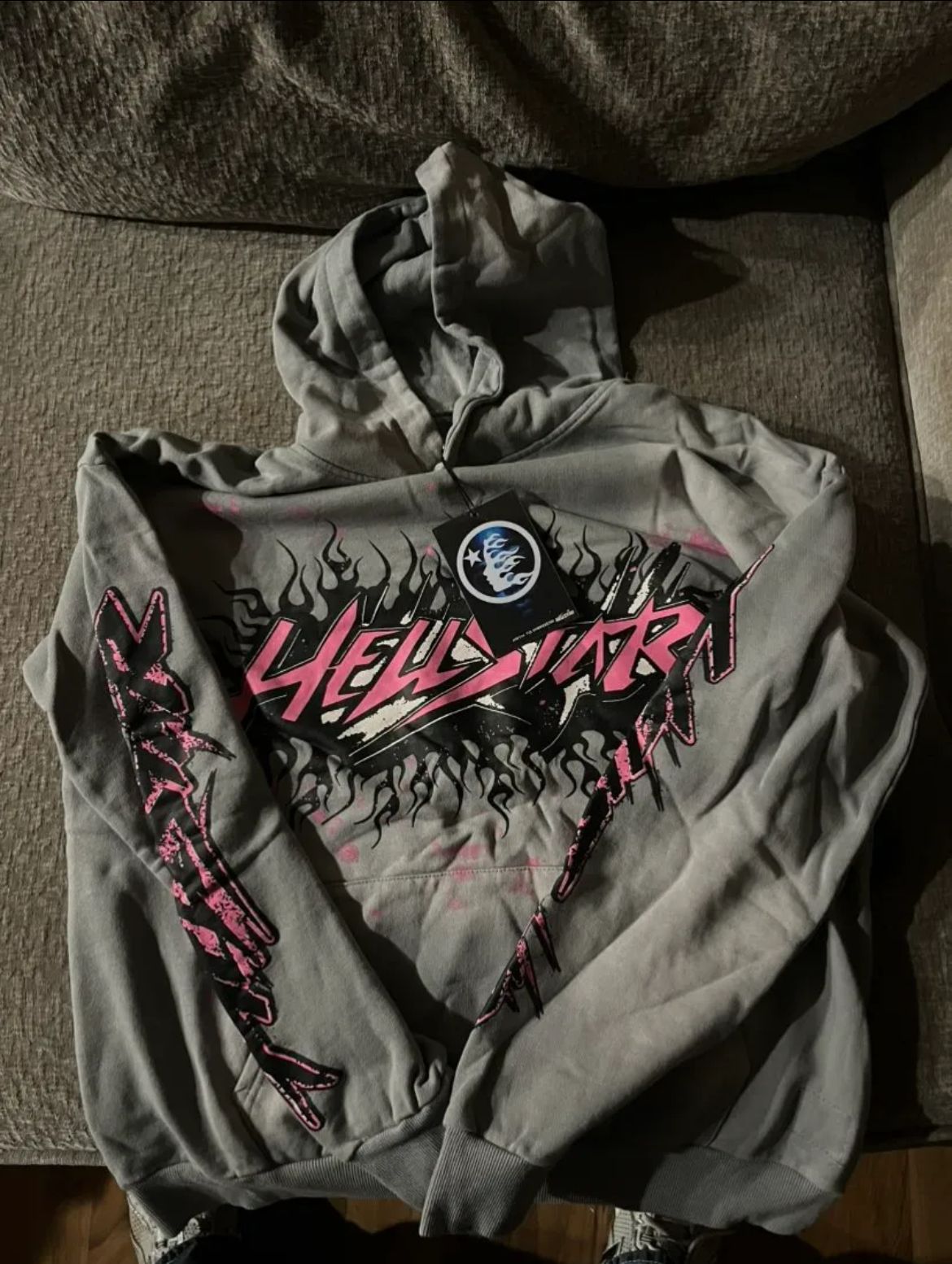 large grey hellstar hoode with all tags and bag