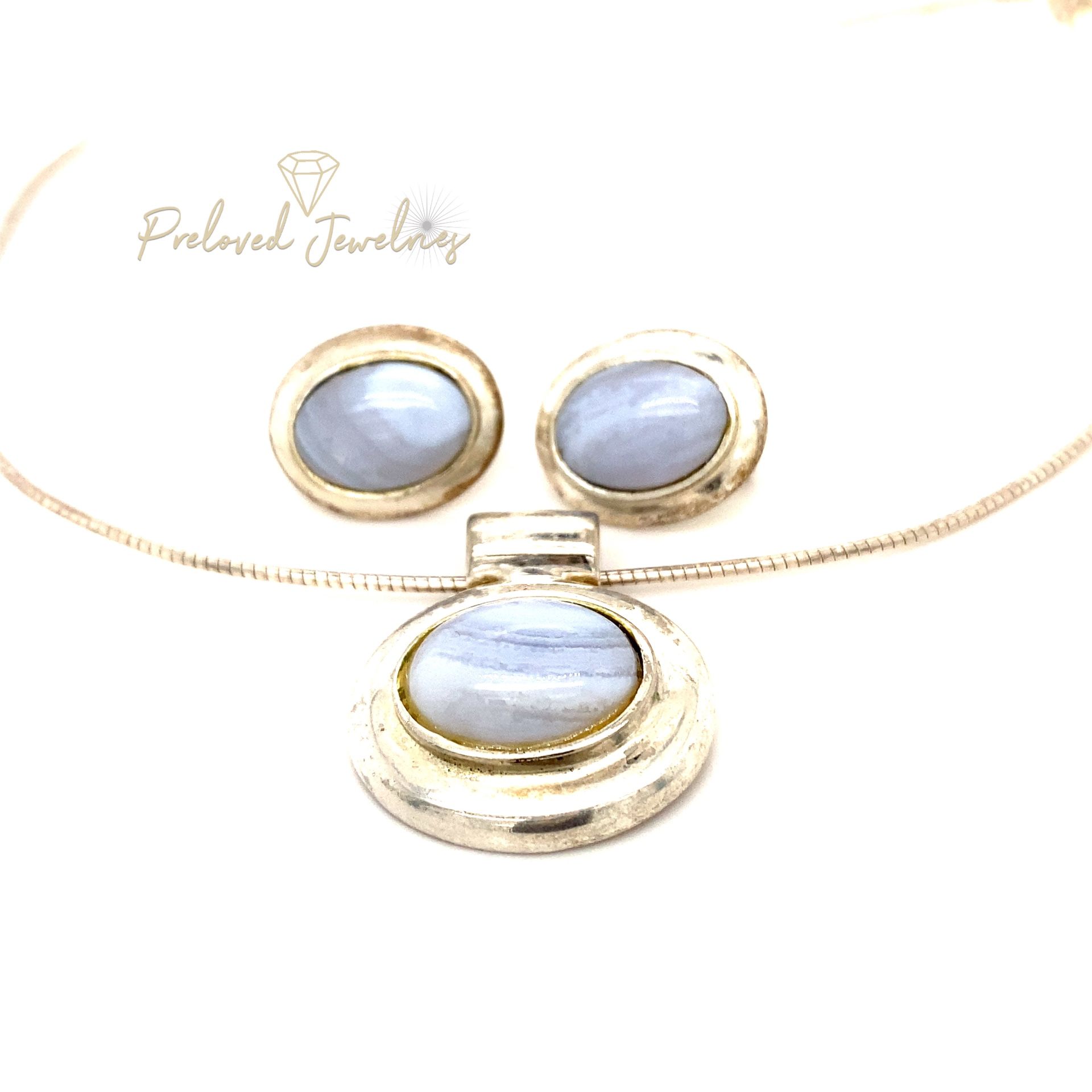 don’t know what type of stones this is but it’s gorgeous It’s real sterling silver 16” Chain The set is preowned so it’s shows wear. Please refer all photos.