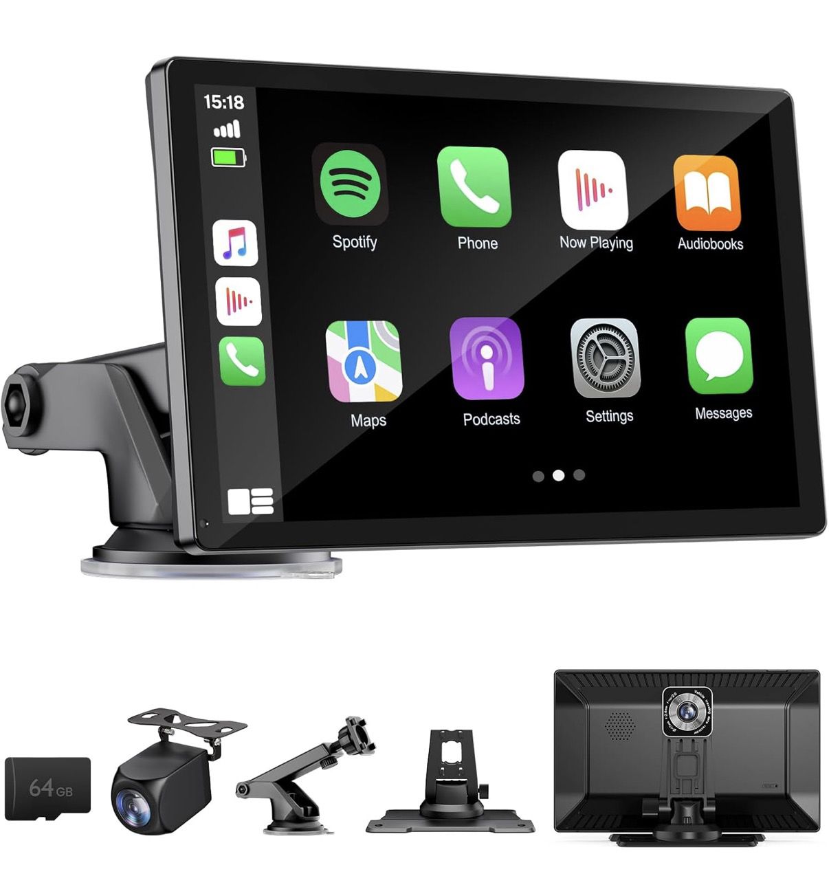 9" Wireless Apple Carplay Screen for Car with 4K Dash Cam, Portable Apple Carplay & Android Auto with 1080p Backup Camera DVR, Voice Control/GPS Navig