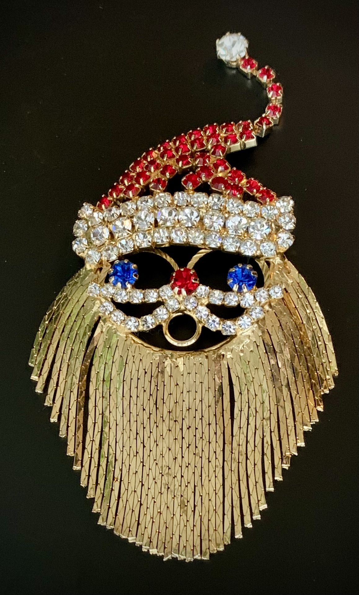 Vintage Rhinestone Santa Pin Christmas Brooch Jewelry