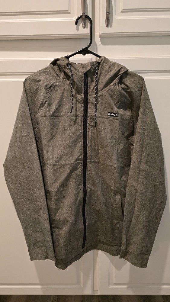 Selling New (no tags) HURLEY Zip-Up Hoodie windbreaker style jacket. Comes in a olive green colorway w/a floral pattern design etched on the fabric. Size SMALL in Men's, but fits loose. Asking $55 OBO