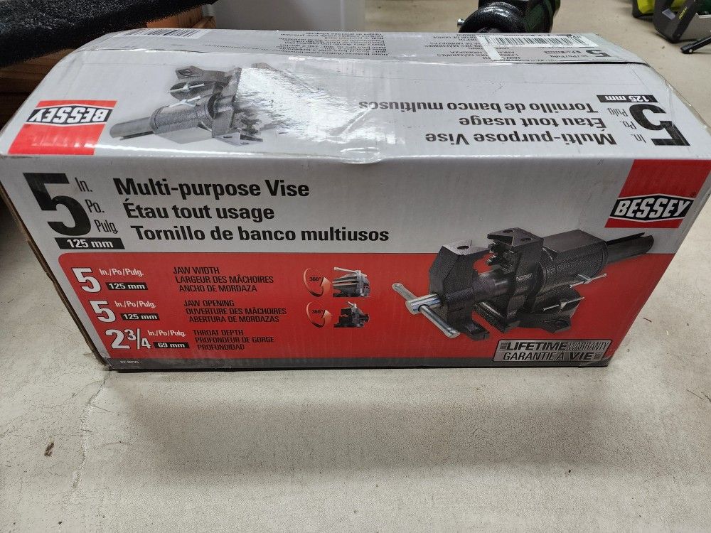https://offerup.com/redirect/?o=aHR0cHM6Ly93d3cuaG9tZWRlcG90LmNvbS9wL0JFU1NFWS01LWluLU11bHRpLVB1cnBvc2UtUm90YXRpbmctUGlwZS1hbmQtQmVuY2gtVmlzZS13aXRoLVN3aXZlbC1CYXNlLUJWLU1QVjUvMjA1MDIzMDc2 Brand new from home depot. I bought two where I kept one and the second one was supposed to be for my father but he already has one. This is a brand new unopened 5 in. Multi-Purpose Rotating Pipe and Bench Vise with Swivel Base. Very heavy vise that will require mounting to use. Pictures are mine and the unopened box.