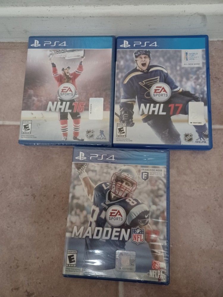 Qty 3 PS4 Games - Price Includes All NHL 16 - New, unopened. NHL 17 - opened, used. Madden 17 - New, unopened. Thank you Normal Heights San Diego 92116