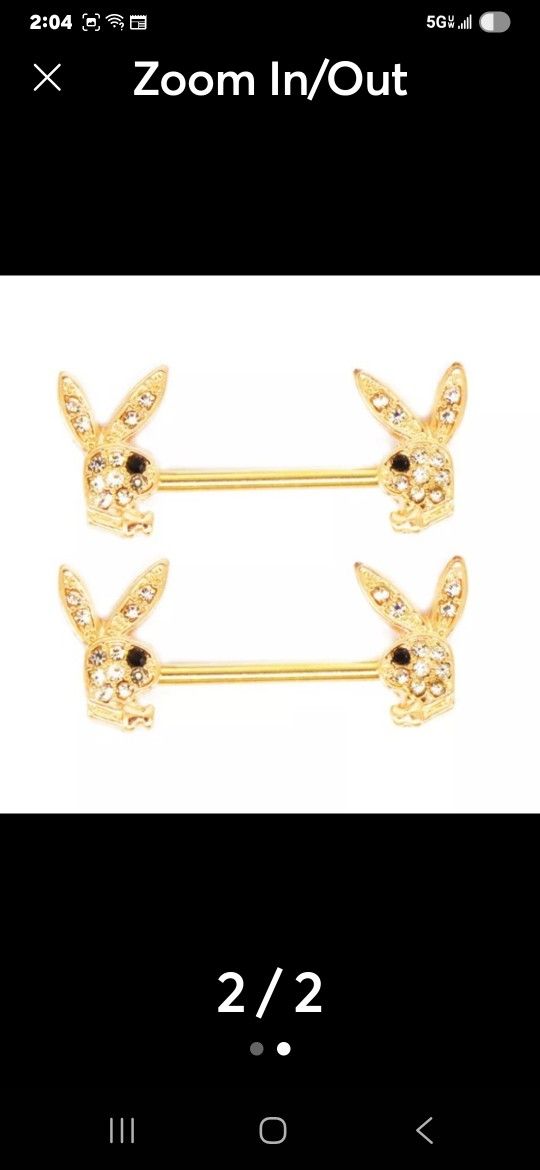 A Set Of Gold Playboy Bunny With Black Zirconia Stone And Rhinestones Nipple Piercings Material: Stainless Steel