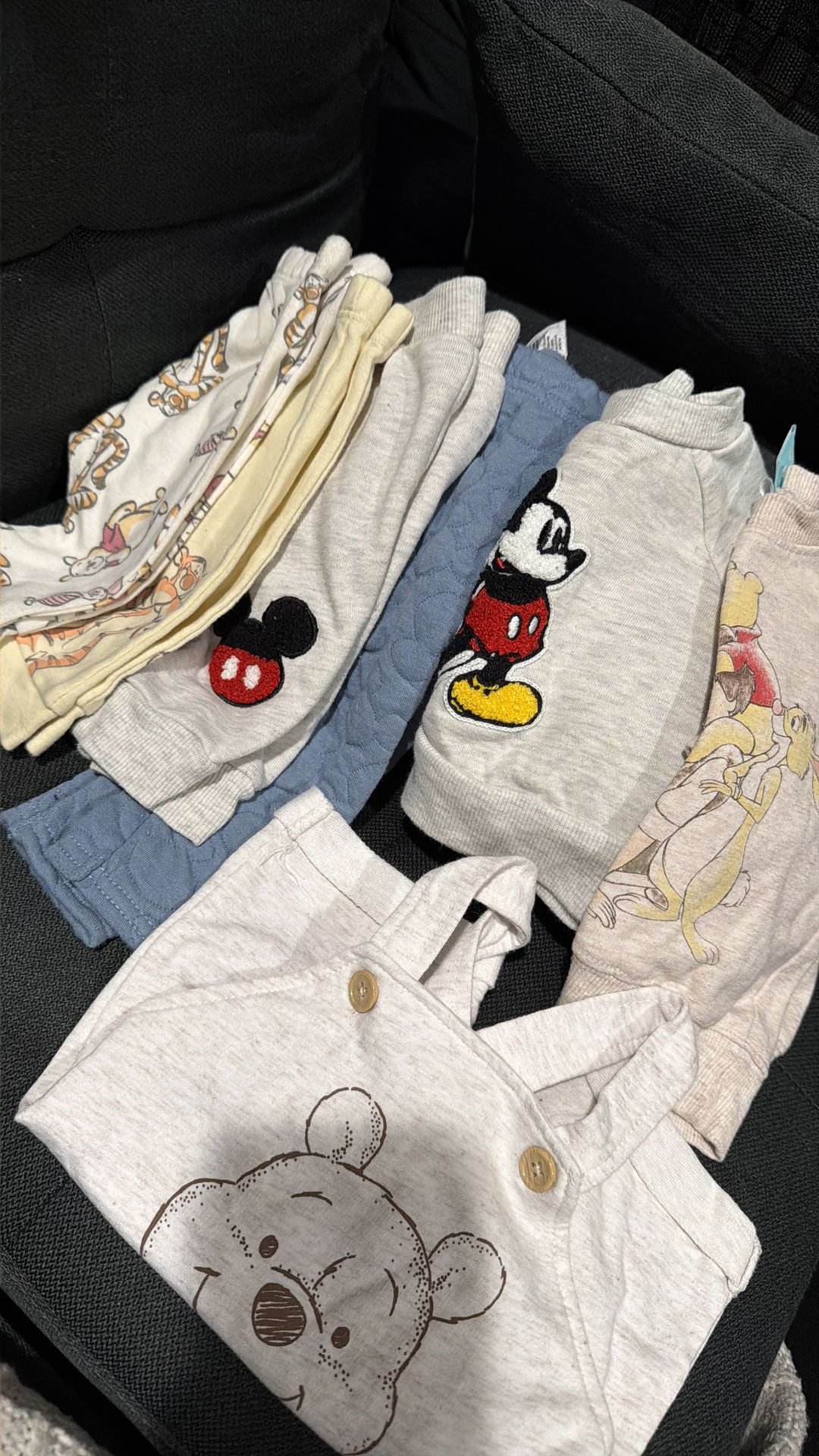 4 Disney pants 2 Disney sweaters 1 romper Clean Good condition only used once!