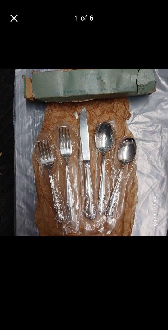Product Information Silverplate Finish: Glossy Piece Code: 5P-3 Condition: New (each item is inspected for quality and is guaranteed to be in excellent condition) Web ID: (contact info removed)1 Set Pieces 1 - Modern Hollow Knife-Pinched Handle [K1MPH] 8 5/8 in, 4 1/4" BLD 1 - Fork [F1] 7 1/4 in 1 - Individual Salad Fork [SF] 6 3/4 in 1 - Teaspoon [TS] 6 1/8 in 1 - Dessert/Oval Soup Spoon [DES] 6 7/8 in