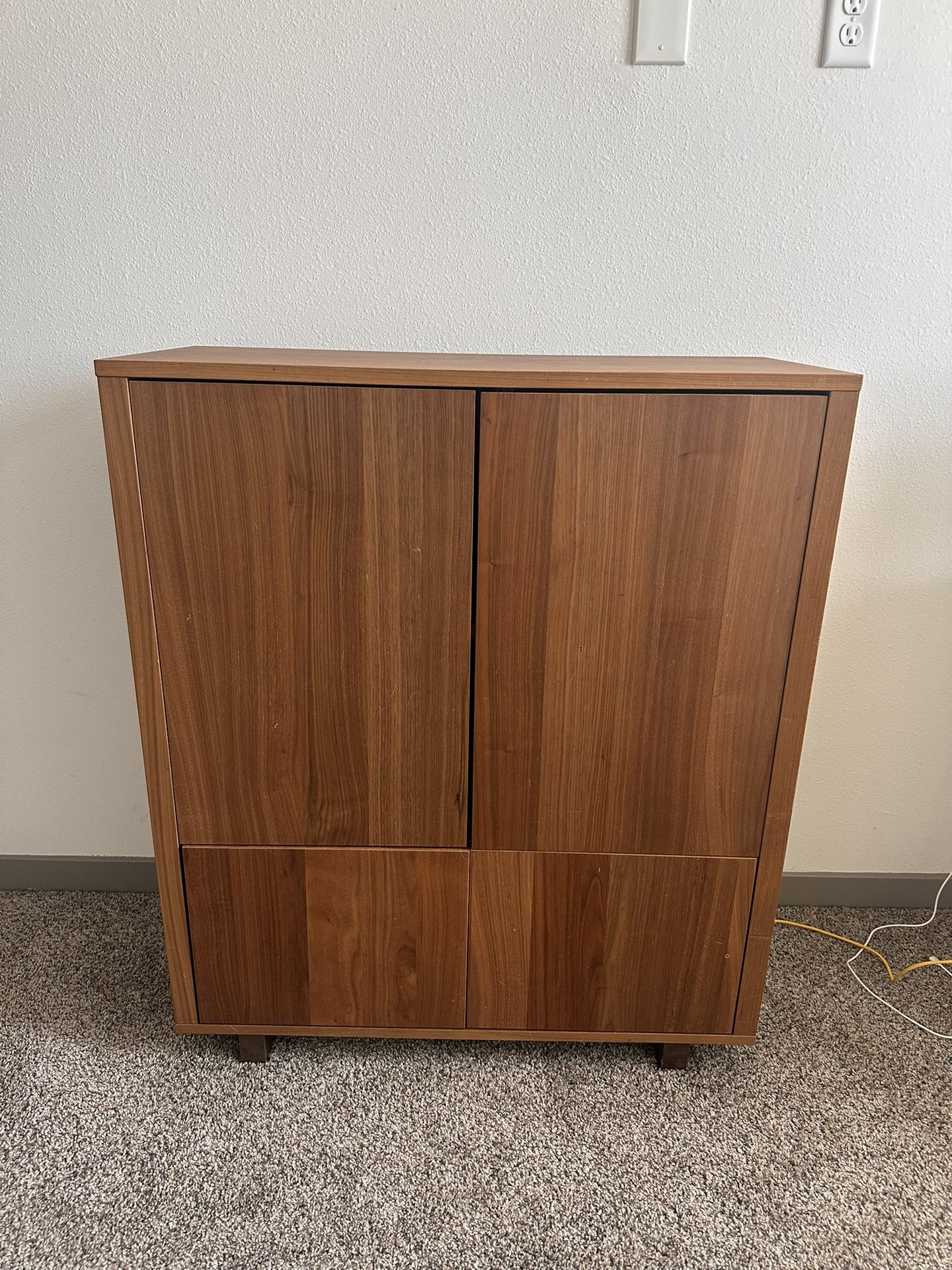 Brown wood cabinet from Ikea. Good condition. 35 3/8 x 42 1/8 " Specific Dimensions in Pictures