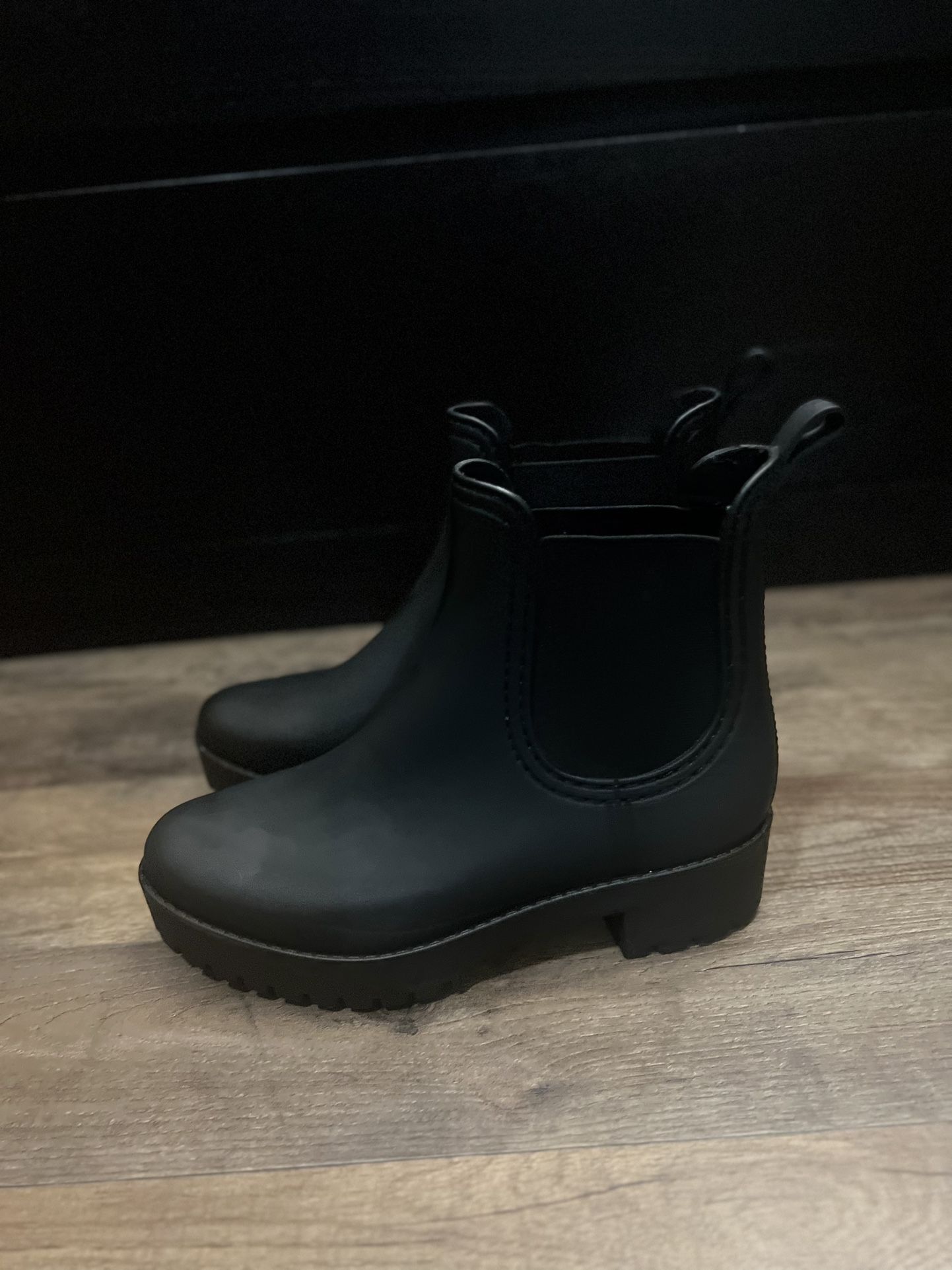 PRODUCT DETAILS Fits true to size, order your normal size Elastic goring at sides for a flexible fit Round toe Pull on Pull tab at back 1.75" stacked block heel, 1" platform, feels like 0.75" heel Rubber upper, synthetic lining, rubber sole Imported Web ID: (contact info removed)