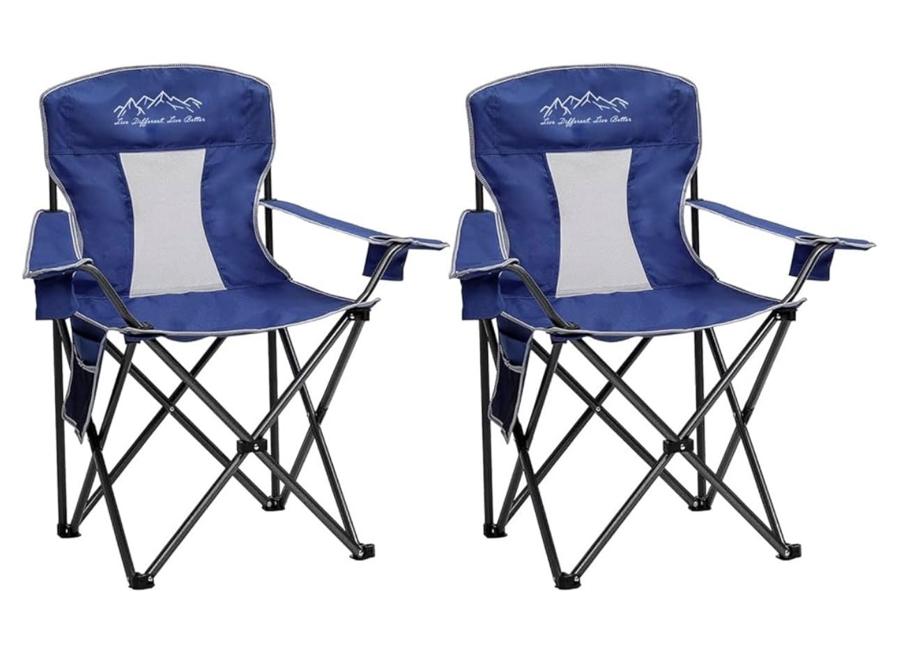 Brand new - 2PCS Mesh Folding Camping Chairs, Oversized Portable Outdoor Chairs, Weight Capacity 325 Ibs with Cup Holder, Storage Pocket, Carry Bag Blue