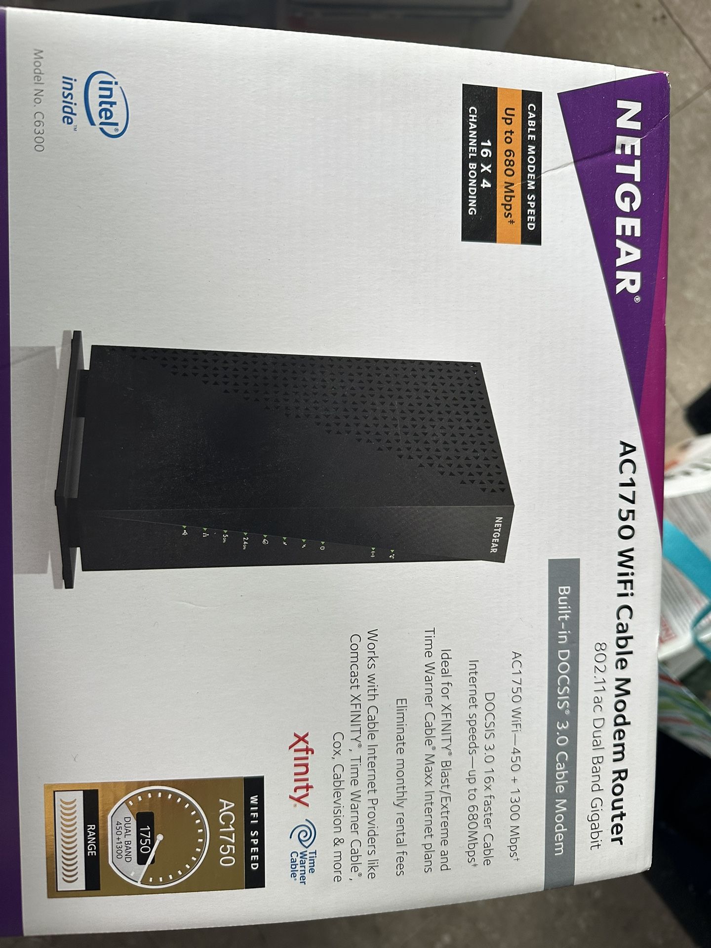 Netgear WiFi Cable Modem Router AC1750. Used and in original box