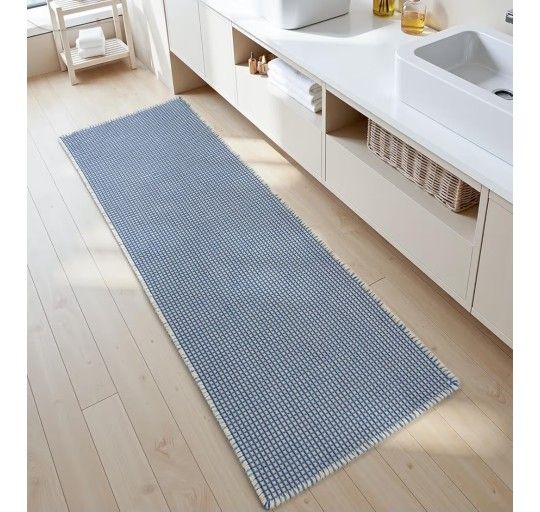 Super Absorbent Non Slip Bath Mats for Bathroom Floor Two-Color Woven Bathroom Mat Machine Washable Bathroom Rugs with Tassels, Beside Tub Bath Rugs, Blue & Cream, 2' × 6' by cocoer New H1051