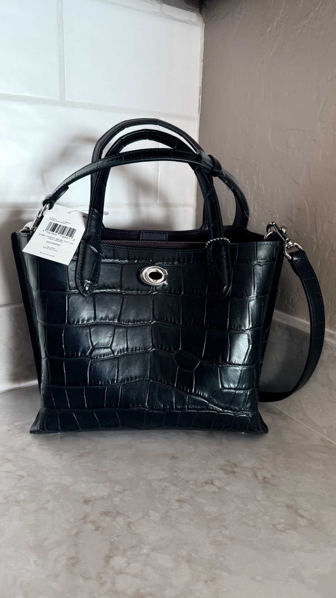 Black Coach Embossed Croc Willow Tote 24