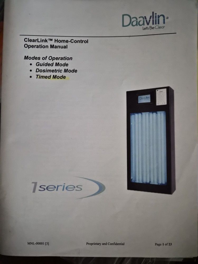Daavlin home unit. Instruction manual and timing chart. Practically new. No issues