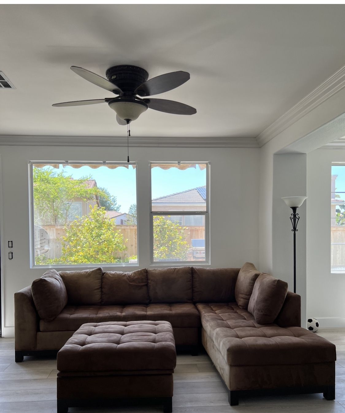 3 piece Sofa Sectional (120inx84in) Includes Over Sized Ottoman (3ftx3ft) (storage included) Suede Material Comfortable Good condition