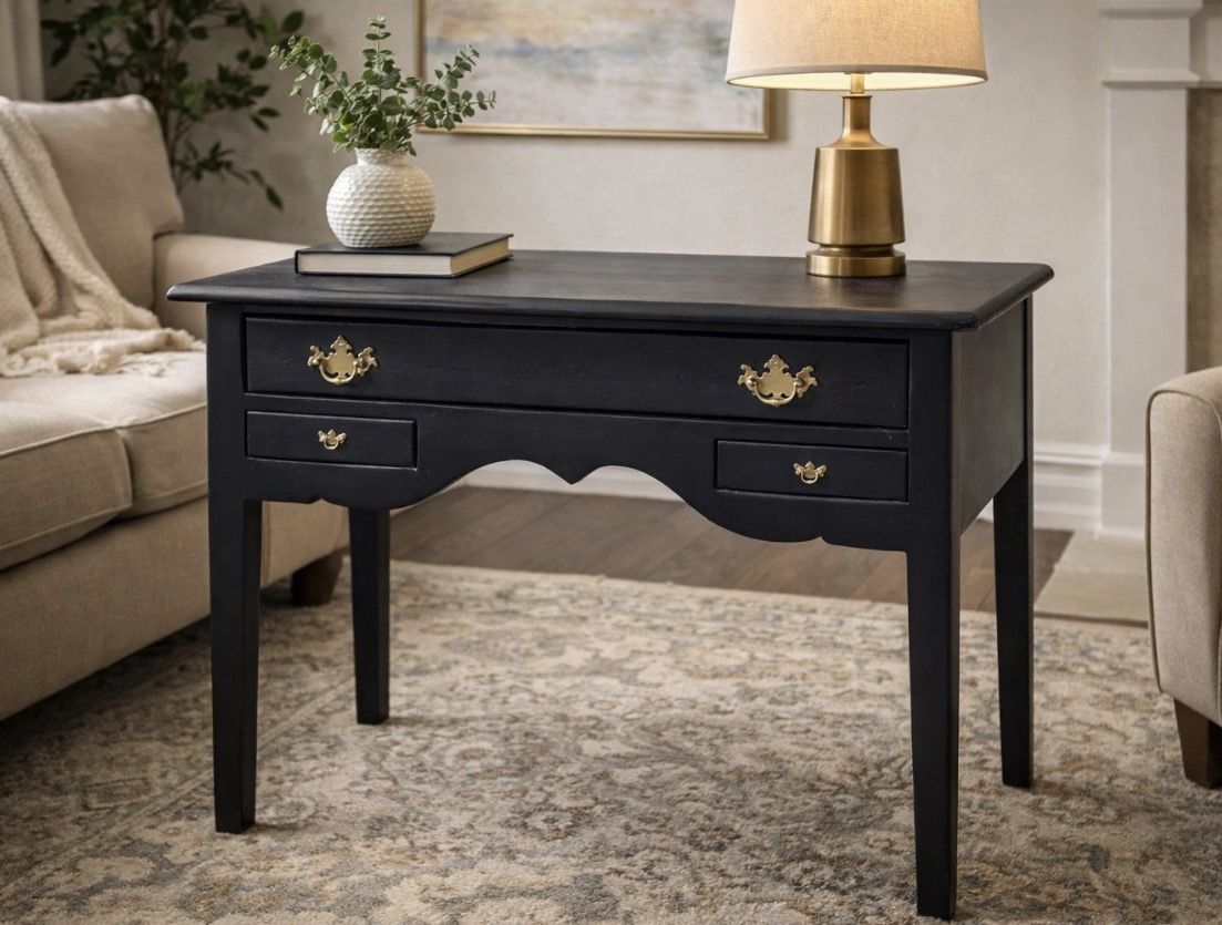 Gorgeous table from England. Table has been refinished in slate black and sealed with polyurethane for durability. Original handles have been cleaned and restored to their original beauty. 34” W 22” D 22” T Pickup in Lakewood near Pierce & alameda. Accept Venmo, Zelle, PayPal or cash.