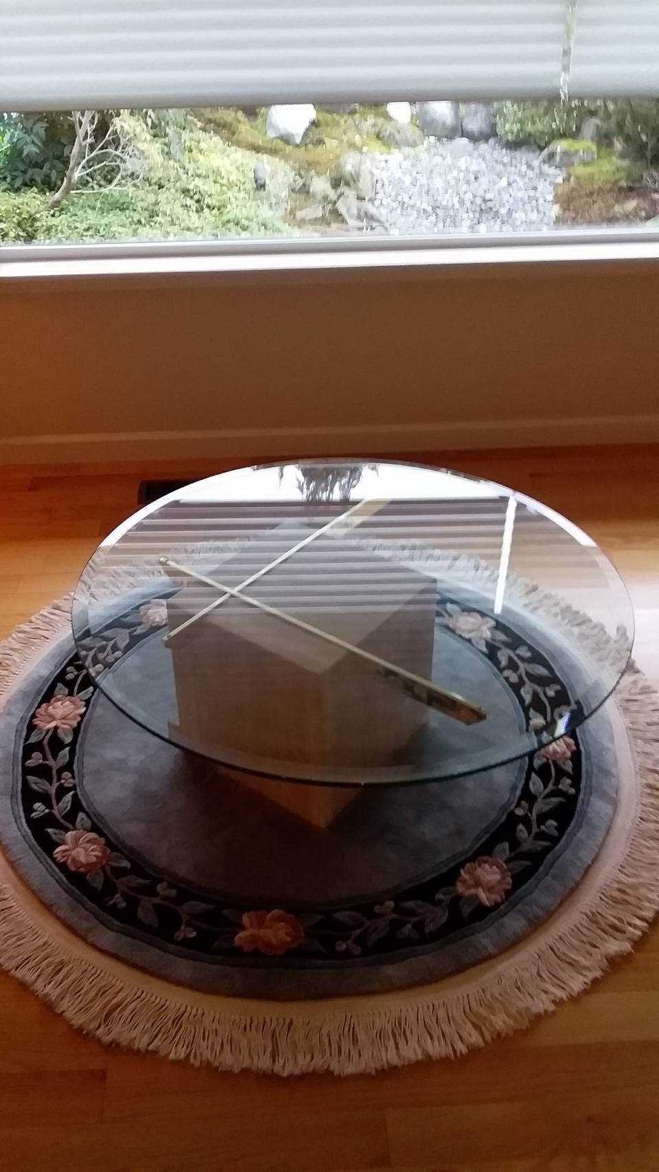 No pet, no smoking high end home High end modern glass coffee table with marble stand in excellent like new condition. $150 - SOLD High end circular rug in excellent condition $125 Silk artificial fake flowers in pot from high end furniture store $25 Ethan Allen, Dania, Scan Design, West Elm, Pottery Barn, Restoration Hardware